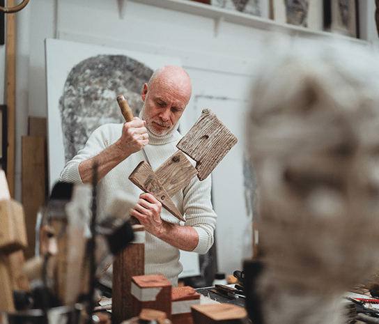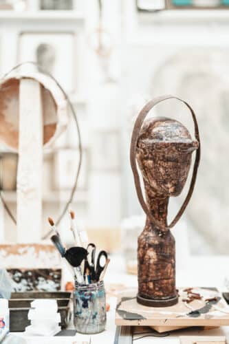 Al sinds zijn academietijd schildert, bouwt en vormt Visser uitsluitend koppen – tronies. Geen portretten maar vormen en associaties van het gezicht, soms expressief, dan weer vervaagd of minimalistisch neergezet. Structuur, reliëf en liefde voor oude verweerde materialen. Voor Visser is zijn werk een ode aan creatie. ‘Het laten ontstaan, intuïtief, niet gehinderd door grenzen van het 2-dimensionale of voorgeschreven regels.’