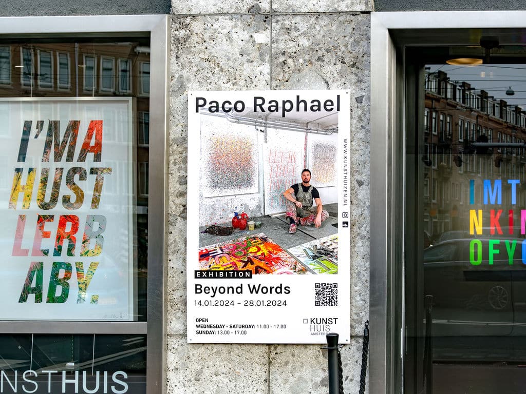 Op zondag 14 januari verwelkomt Kunsthuis Amsterdam kunstenaar Paco Raphael voor de opening van zijn expositie Beyond Words.