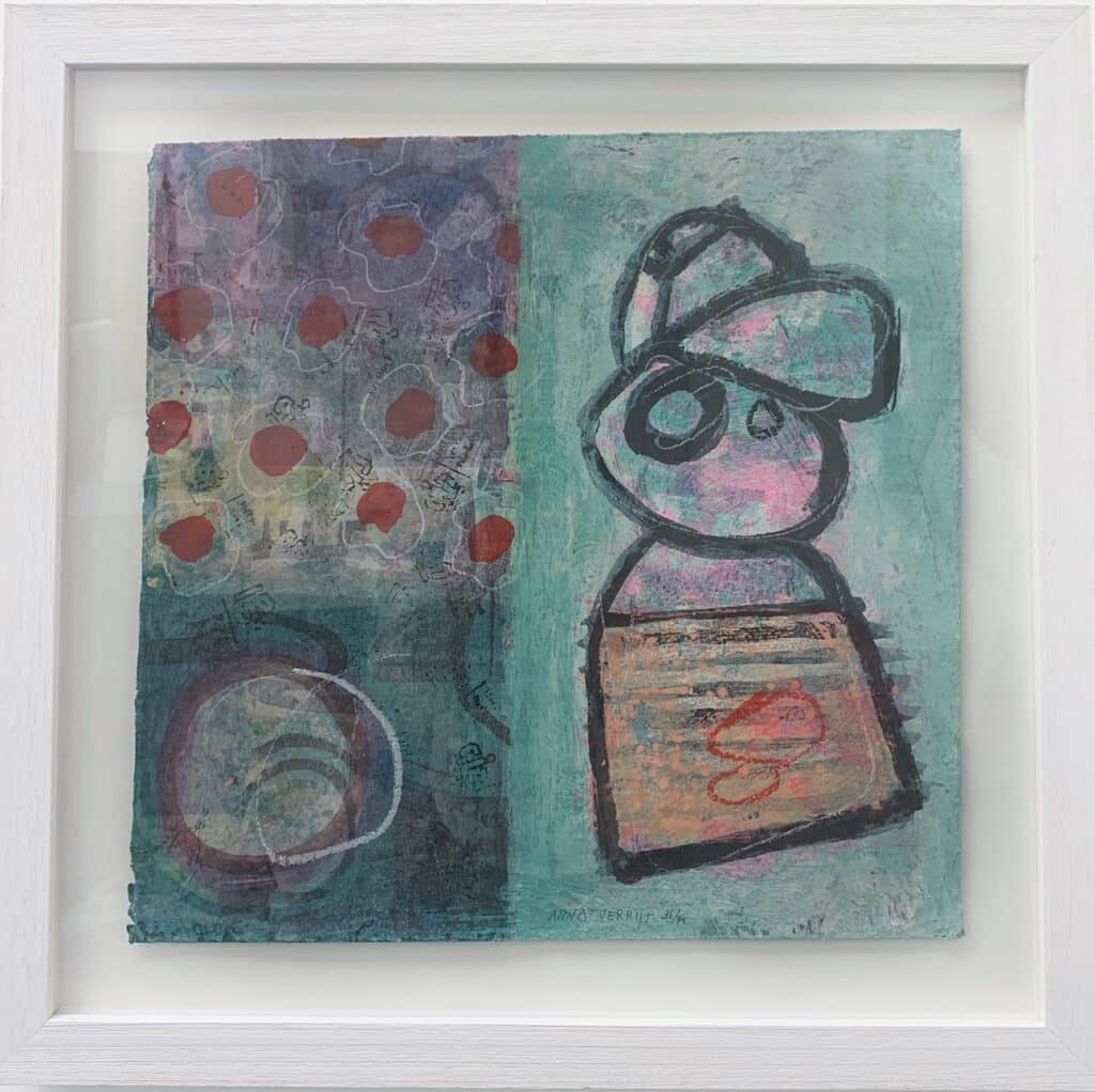 Hoewel de kunstenaar zich voortdurend blijft vernieuwen, zijn er in alle nieuwe ontwikkelingen ook een aantal constanten, kenmerken die typerend zijn voor het werk van Anna Verrijt. Zelfs in het vroegste werk, dat niet abstract was, zijn ze te herkennen: humor, poëzie en verwondering. De abstracte schilderijen op doek en paneel tonen hun lichtvoetige, subtiele humor in een wulpse krul of een titel als “Freud Revisited”. Hier en daar zie je suggestieve verwijzingen naar de werkelijkheid of symbolische vormen.