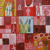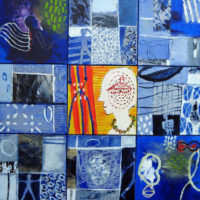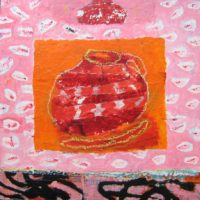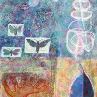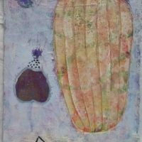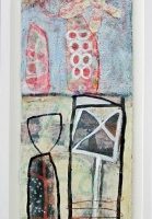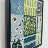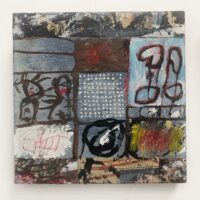 In addition to acrylic paint, Verrijt uses pieces of printed paper, old photos, letters, and other found materials. She might incorporate a candy wrapper into a painting, simply because the color or pattern inspires her, or because it holds a certain meaning for her. Each painting is like a diary entry, a note of major and minor events. A bird suddenly taking flight, a shocking phone call, or a song on the radio: their atmosphere is captured in the work.