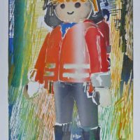 Delesalle has always been inspired by wood engraving, a technique he mastered starting in 2008. With this complex, centuries-old method, he creates images of vegetables, nails, toys, and bicycles, as well as life-sized depictions of trains and Playmobil figures—subjects that have brought him significant popularity. This has led to an endless series of humorous portraits of various characters, ranging from pirates to clowns. These figures possess a surreal, intriguing, and playful quality that almost hypnotizes the viewer. The wood engraving technique enhances this effect, giving them an even rarer and more unique character. Delesalle’s Playmobil figures appear almost human.