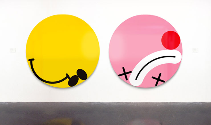 A graduate of Walsall College of Art and Kingston University, Joyce currently lives and works in London, where he has already made his mark at the Royal Academy of Arts and the Saatchi Gallery. In 2016, his exhibition 100 Likes was featured in the high-fashion concept store Colette in Paris, along with a range of merchandise. His famous Collapsed Smiley can now be found on items such as clothing, scented candles, skateboards, and lighters. As of now, his work is also represented by De Kunsthuizen.