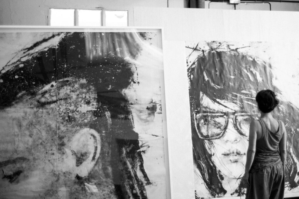 Painting being her lifelong passion, Lidia also has a love for photography, etching and large scale sculptures. Her monotypes are an archetypal portrait of the early twenty-first century. Her works of large size have a strong presence and exude dynamism and vitality. And this is all the more remarkable because it is a work on paper, a work of colour withdrawal, using water and bleach, and not of layering. This technique allows for the beautiful colour palette that sets her work apart; with shades from pink to white and from black to grey.