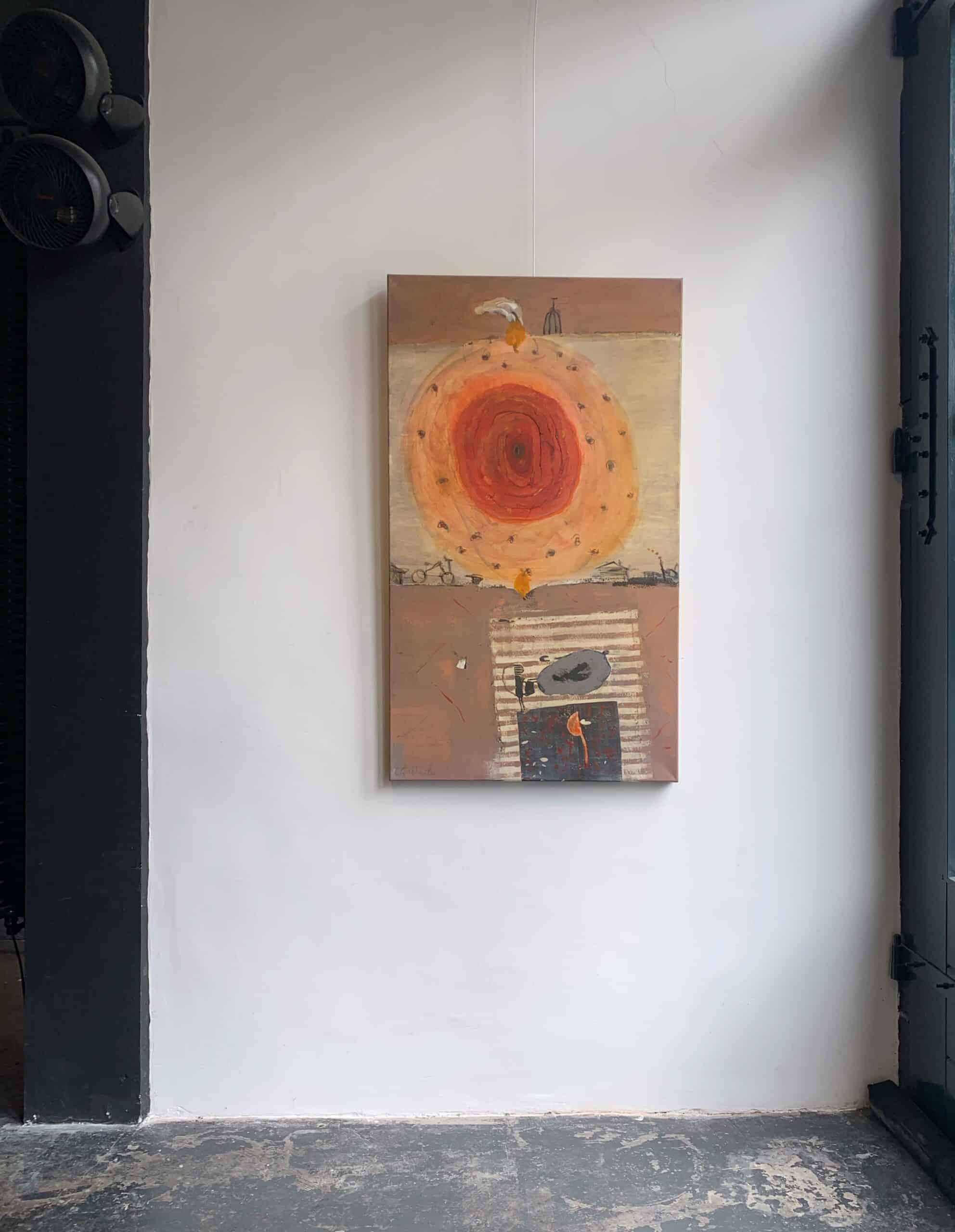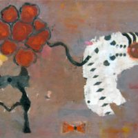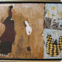 Liesbeth Rahder studied at the Gerrit Rietveld Academy in Amsterdam. Rahder paints intuitively, starting with structured color fields across the entire surface, and then adds small icons that can be highly detailed. She also often makes small inscriptions, scratched into the wet paint with a palette knife or the back of a brush. The figurative elements she applies are her signature, and the coherence or conflicts in her work draw the viewer into the painting. This forces the viewer to create their own story.
