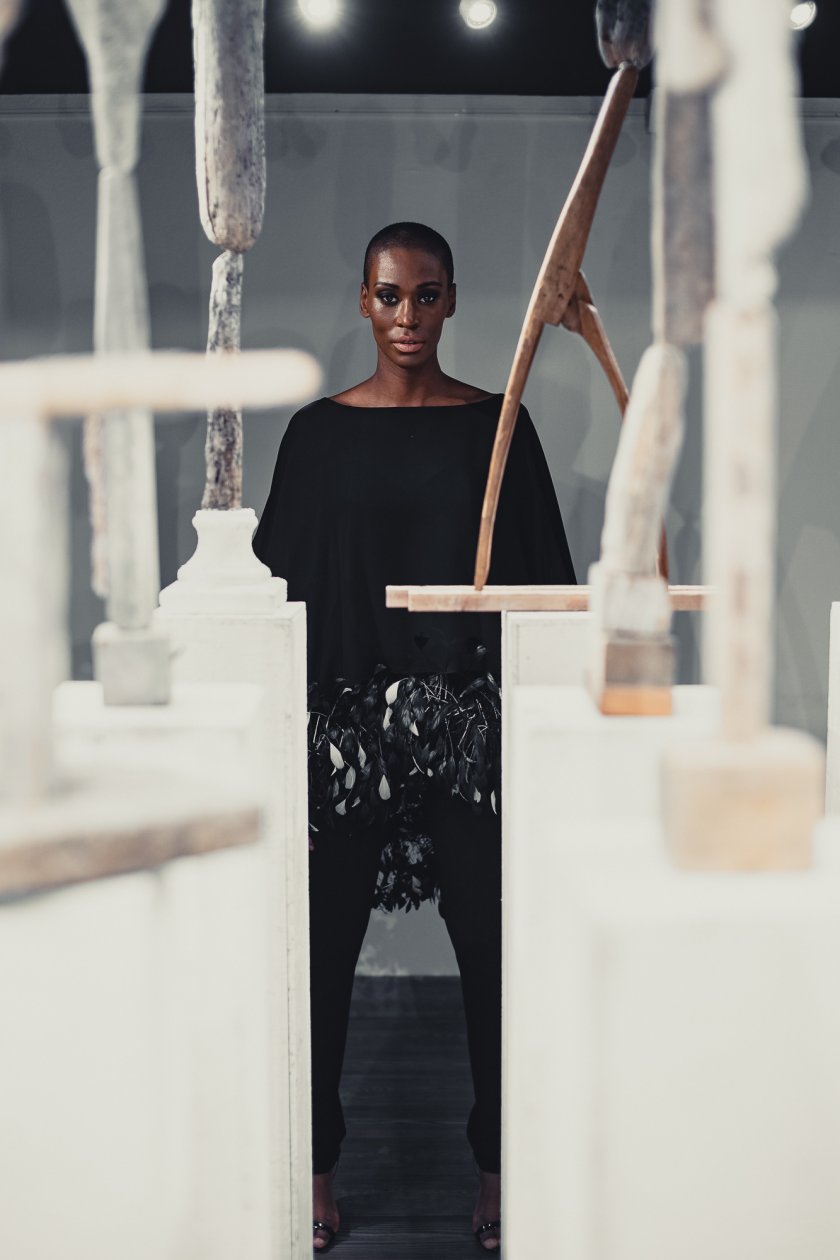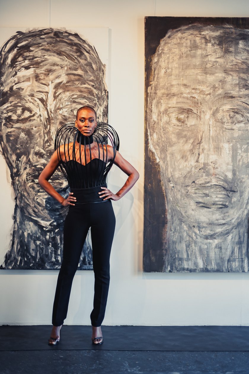 The contrast between the “delicate design” of his haute couture and the roughness of his artwork is striking. The color palette and the dynamic use of materials are elements found in both of his disciplines. The most important unifying factor is his ability to intuitively connect with the individual and give it a three-dimensional interpretation.