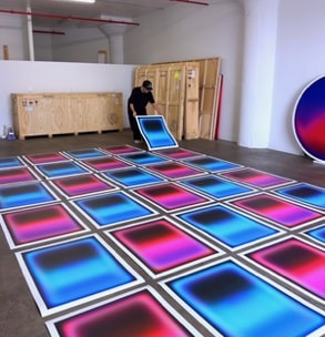 Nick Thomm (1989, Australia) is a contemporary artist based in Los Angeles, with a second studio in Melbourne. He is known for his large-scale spectral paintings and immersive installations in which he explores the relationship between colour, abstract image construction, and contemporary technology.