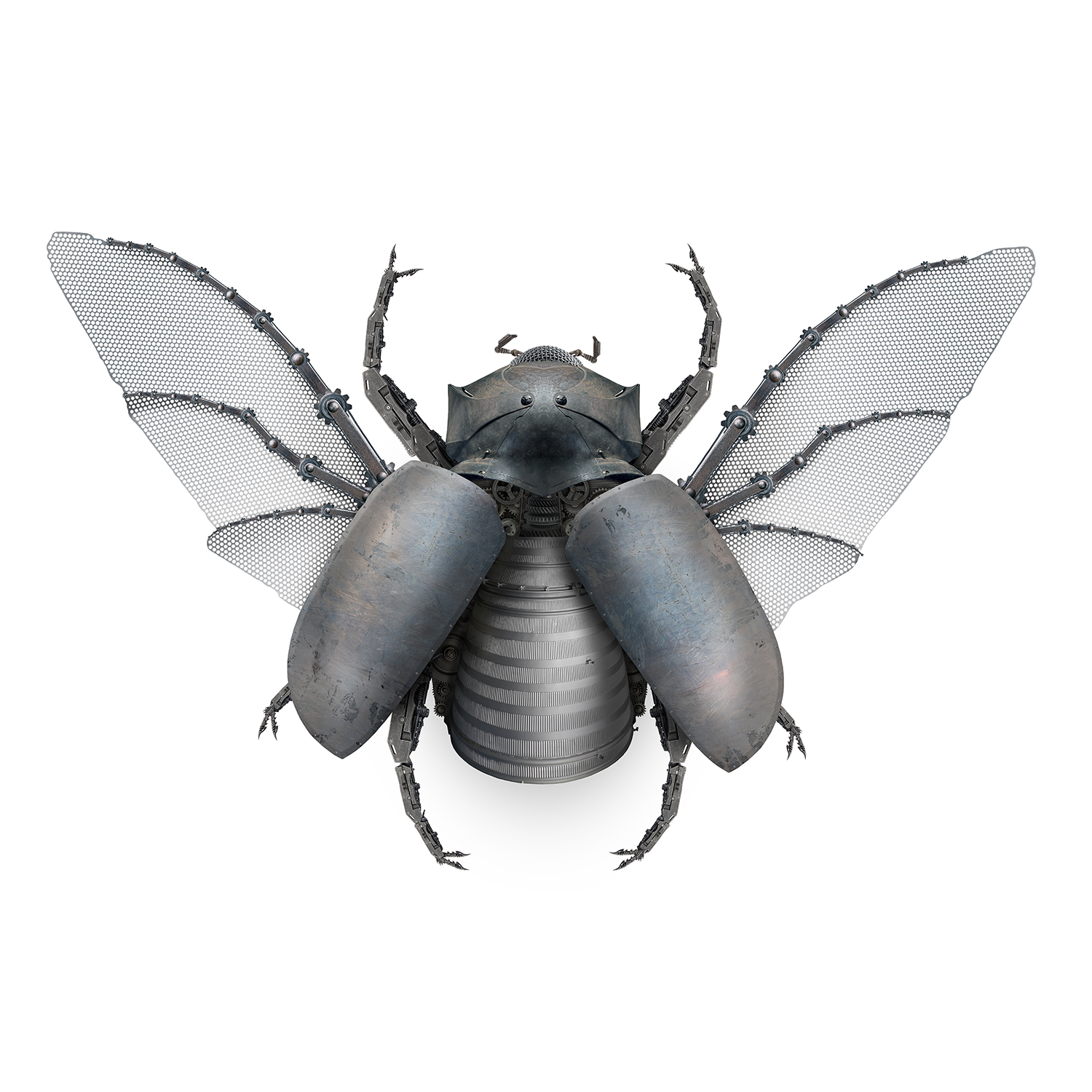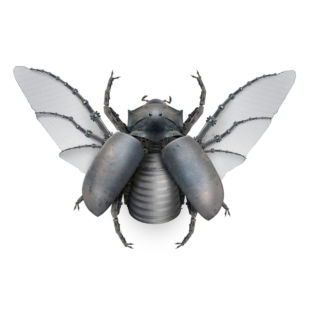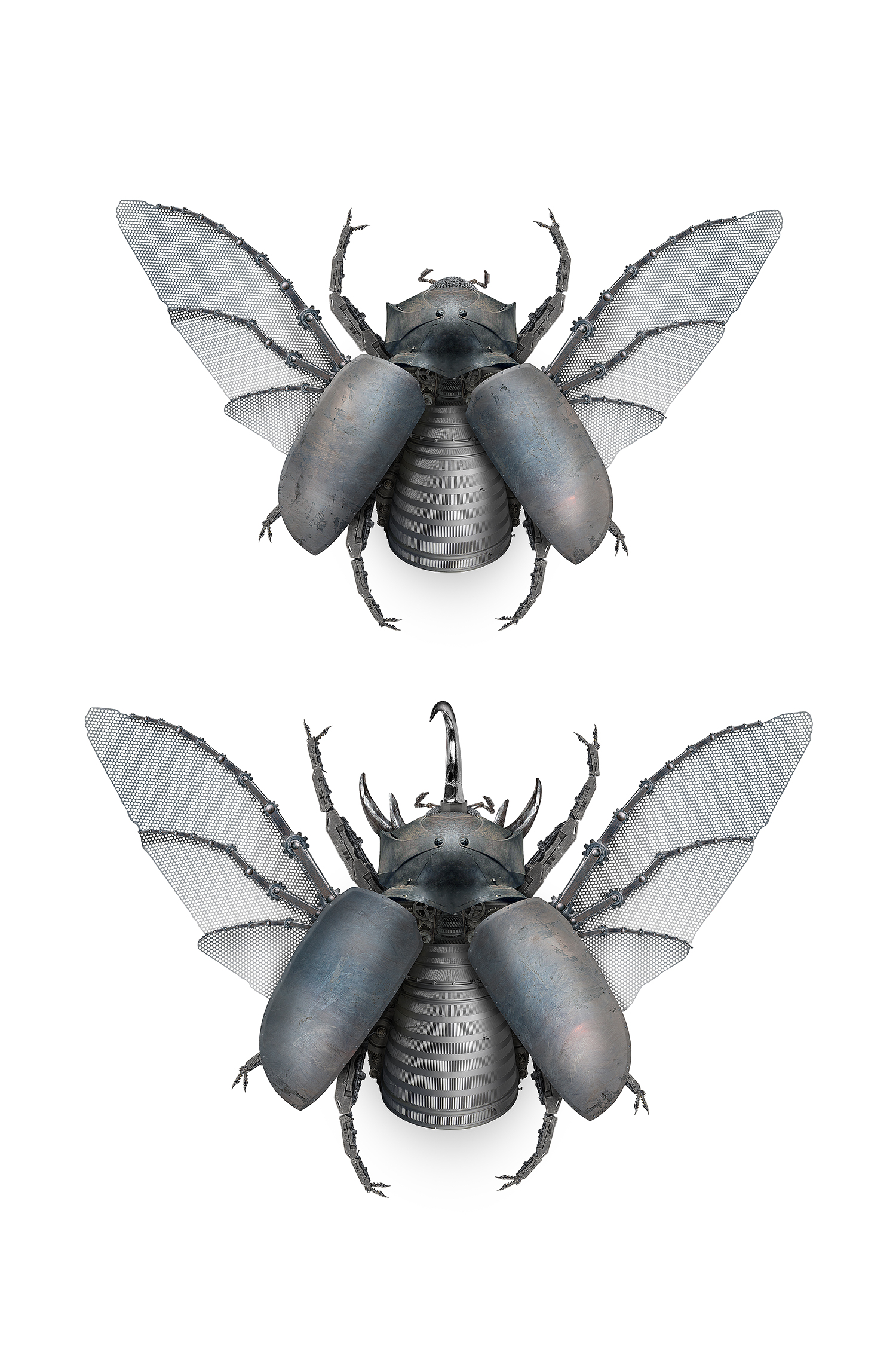 In the final phase, De Ligny merges the hundreds of layers that make up the various parts of the exoskeleton, such as legs, wings, and antennae. He then combines all the elements into one cohesive whole and breathes life into them, resulting in an organic yet mechanical-looking insect.