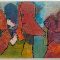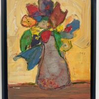 Van der Meulen’s compositions emerge intuitively, navigating between the figurative and the abstract. Figures in his work may be distorted and twisted, surrounded by bursts of color, structure, and dynamic lines. His expressive use of vibrant colors echoes the Cobra movement, with which he shares an affinity. Using acrylics, oils, gouaches, and collage elements, including photographic material, Van der Meulen’s works reflect his nightly creative process, where his fantasies and emotions come alive in a world between reality and imagination.
