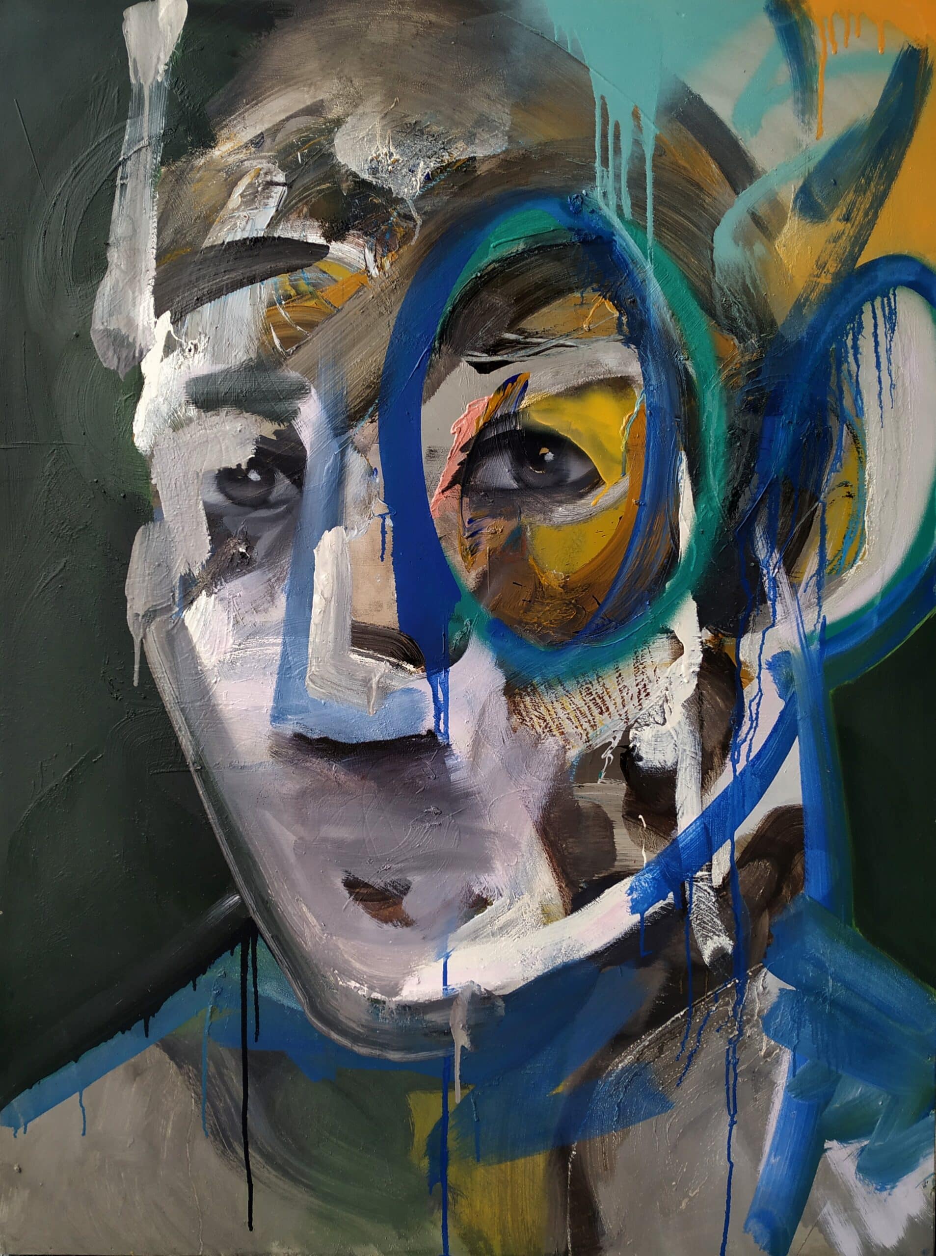 Santiago has been working on a portrait series for over ten years now, which has allowed him to find a pictorial language which is very recognizable. Lately he has been exploring with digital mediums to bring his painting to life.