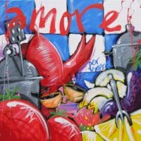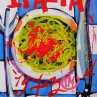 Selwyn Senatori, born in 1973 in Pallanza, Italy, is a Dutch artist based in Amsterdam, known for his colorful, energetic, and playful paintings. His Italian background and love for the good life are recurring themes in his work, where he often incorporates images of Italian culture: from espressos and Vespas to wine glasses and stylish figures. Senatori’s art radiates a Mediterranean atmosphere and celebrates *la dolce vita*, the art of enjoying life.