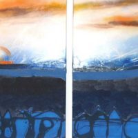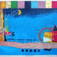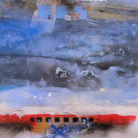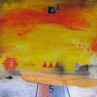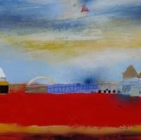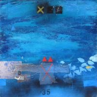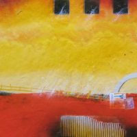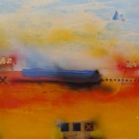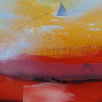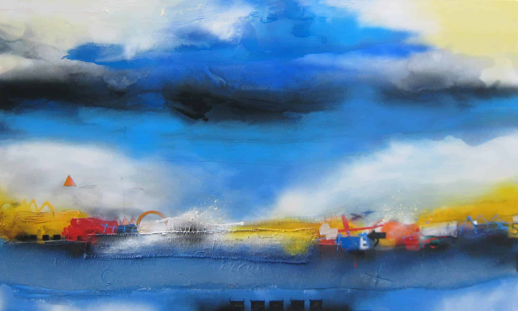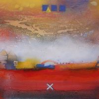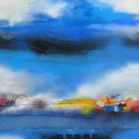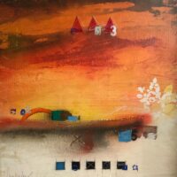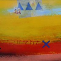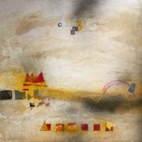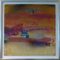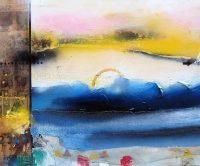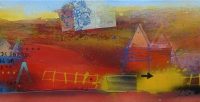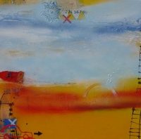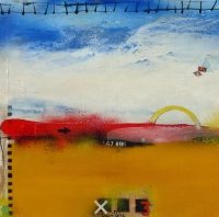 A defining feature of his work is the composition: vast skies over land or water with a low horizon, rendered in a contemporary use of vivid colors. His keen sense of color choice and dynamic brushwork create a specific atmosphere in each painting. Additionally, he employs graphic and collage techniques. His playful, narrative paintings exude a sense of calm that brings a natural compositional balance. In his work, Koster explores a theme that resonates with us all: the search for meaning in human existence. Through this process, he connects to his own life and personal engagement, using a symbolic visual language to convey these reflections.