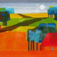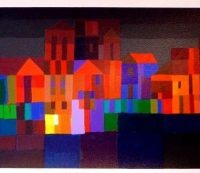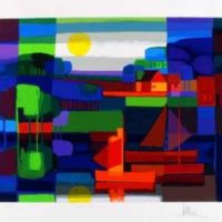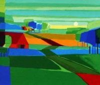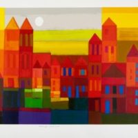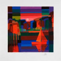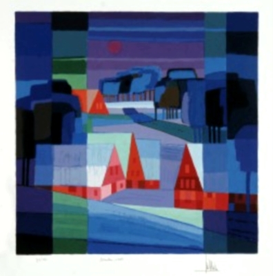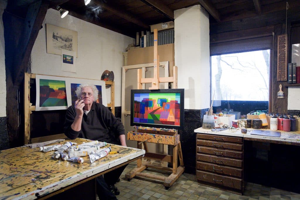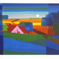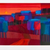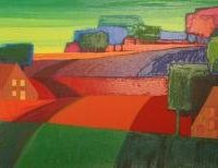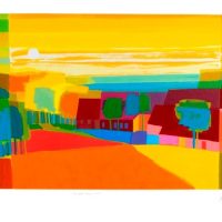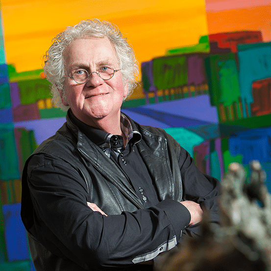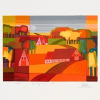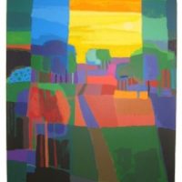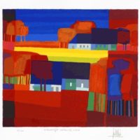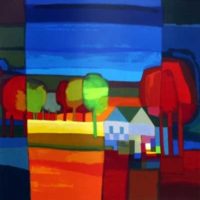 Ton Schulten (1938) is a painter known for his distinctive, colorful landscapes that are deeply connected to the Twente countryside around Ootmarsum. His work is characterized by broad, vertical bands and expressive color blocks, creating a world that feels both familiar and mystical. These compositions, built like a mosaic of colors and shapes, capture the essence of the landscape as he sees and feels it. Trees, villages, and skies are not realistic depictions, but rather abstract elements radiating warmth, nature, and festivity. Red symbolizes warmth, green represents nature, and yellow and orange evoke the sun.