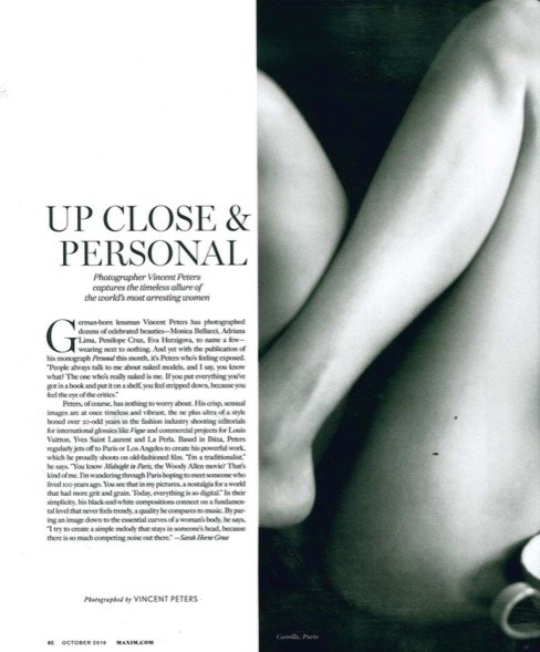 Veel iconische foto’s zijn ontstaan tijdens privémomenten die fotografen delen met hun modellen tijdens de shoots waarvoor ze oorspronkelijk waren geboekt. Dit geldt bijvoorbeeld voor het werk van Helmut Newton, een meester in visuele verleiding, maar ook zeker voor Vincent Peters. Ongeacht wie hij voor zijn camera heeft, Peters streeft altijd naar een ultieme vorm van authenticiteit, het beeld van een spontane en intense ontmoeting tussen fotograaf en model. “Het is niet zozeer het fysieke beeld dat telt, het gaat om de indruk die je bijblijft”. Beelden van beroemde 20e-eeuwse studiofotografen met hun grootformaat camera’s zoals George Hurrell echoën door in het werk van Vincent Peters.
