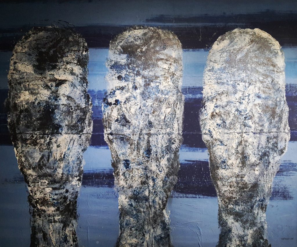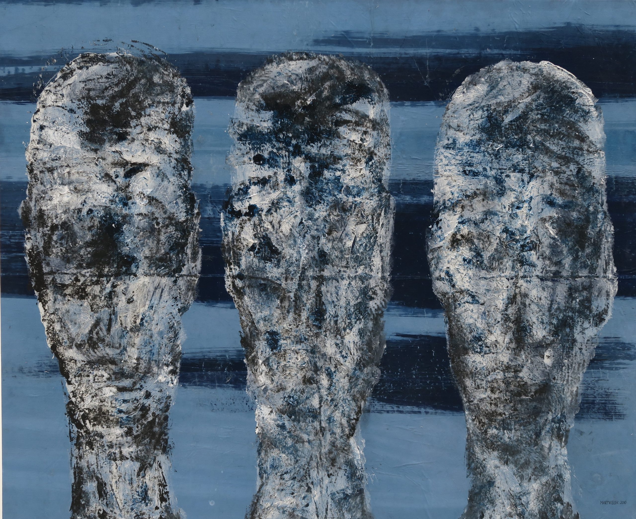 Mart Visser schildert, bouwt en vormt al sinds de academietijd koppen, tronies, gelaatsuitdrukkingen. Geen portretten maar vormen en associaties van het gezicht, soms expressief, dan weer vervaagd of minimalistisch neergezet. Structuur, reliëf en liefde voor oude verweerde materialen. Voor Visser is zijn werk een ode aan creatie. ‘Het laten ontstaan, intuïtief, niet gehinderd door grenzen van het 2-dimensionale of voorgeschreven regels.’De carrière van Mart Visser als couturier gaat over het aankleden van een individu. Zijn kracht ligt hier in de persoonlijke aandacht die hij kan geven aan de vrouw die hij kleed. Hij is in staat een oorspronkelijk idee van een klant te vertalen naar een driedimensionale creatie waar structuur, textuur en techniek kenmerkend zijn voor zijn designs.De kunst van Mart Visser komt op een vergelijkbare manier tot stand, ieder werk is een persoonlijke reflectie van de persoonlijke ontmoetingen die deze multidisciplinaire kunstenaar beleeft. Elk werk heeft een compleet eigen textuur en ontstaat door verschillende technieken toe te passen.Het contrast tussen het ‘delicate design’ van zijn haute couture en de grofheid van zijn artwork is ogenschijnlijk. Zowel het kleurenpalet als de dynamiek in verschillend materiaalgebruik is terug te vinden in zijn beide disciplines. De meest belangrijke samenhang is zijn kracht in staat te zijn het individu aan te voelen en hier een driedimensionale draai aan te kunnen geven.Visser heeft er bewust voor gekozen geen titels te verbinden aan zijn kunst. Hij wilt zijn publiek graag de mogelijkheid geven tot persoonlijke interpretatie.