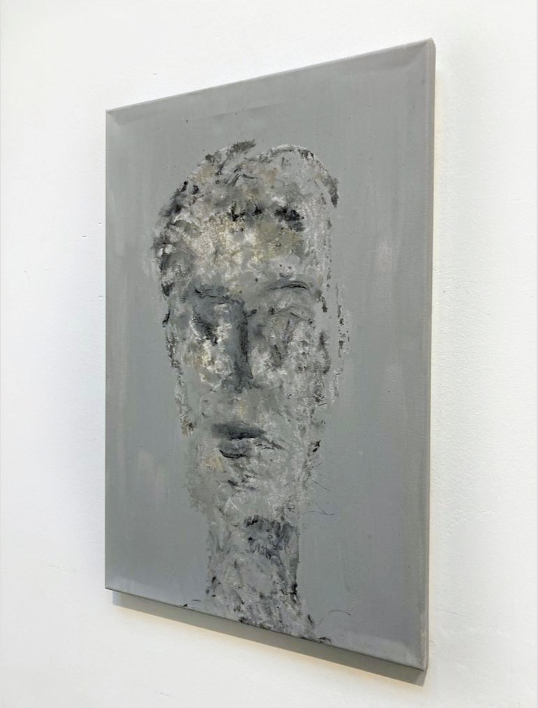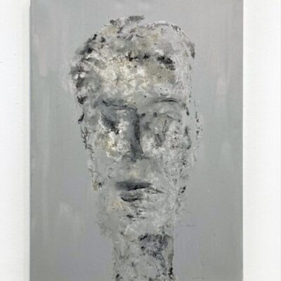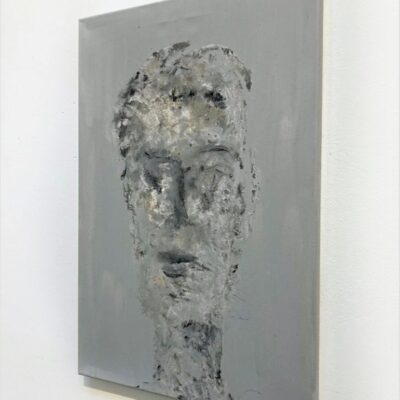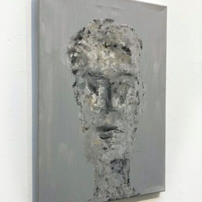Origineel werk van Mart Visser op linnen. Visser schildert, bouwt en vormt al sinds de academietijd koppen, tronies en gelaatsuitdrukkingen. Geen portretten maar vormen en associaties van het gezicht, soms expressief, dan weer vervaagd of minimalistisch neergezet. Structuur, reliëf en liefde voor oude verweerde materialen. Voor Visser is zijn werk een ode aan creatie. ‘Het laten ontstaan, intuïtief, niet gehinderd door grenzen van het 2-dimensionale of voorgeschreven regels’.