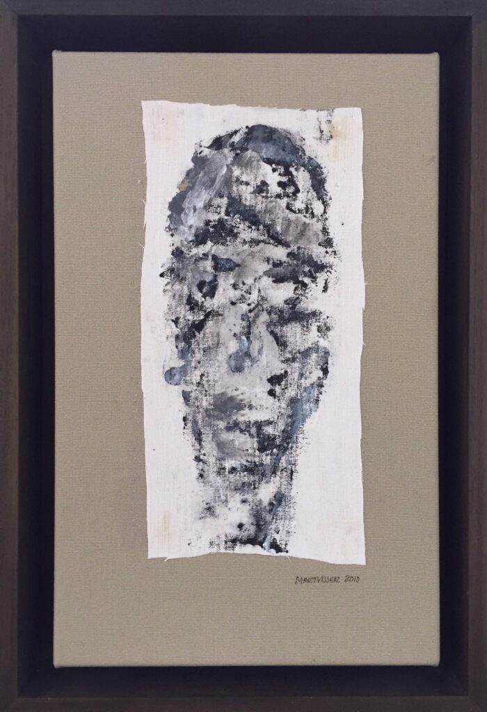 Mart Visser schildert, bouwt en vormt al sinds de academietijd koppen, tronies, gelaatsuitdrukkingen. Geen portretten maar vormen en associaties van het gezicht, soms expressief, dan weer vervaagd of minimalistisch neergezet. Structuur, reliëf en liefde voor oude verweerde materialen. Voor Visser is zijn werk een ode aan creatie. ‘Het laten ontstaan, intuïtief, niet gehinderd door grenzen van het 2-dimensionale of voorgeschreven regels.’