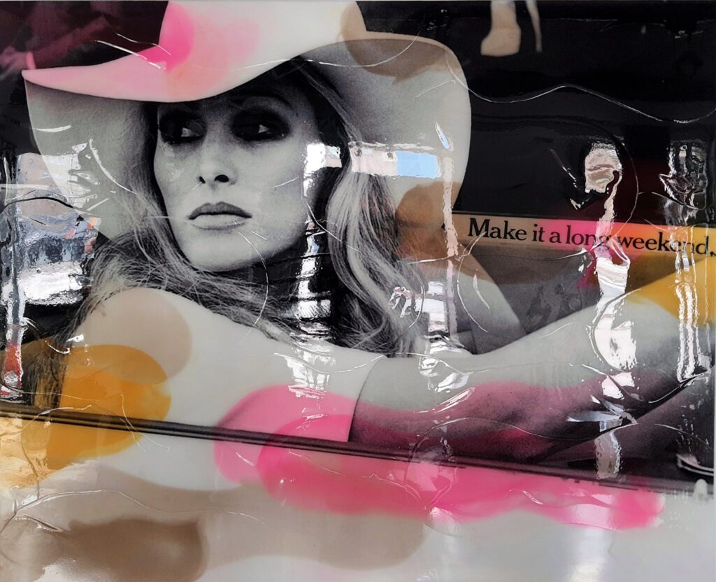 Mixed media monotype op linnen van de befaamde Duitse kunstenaar Jörg Döring. Het werk is door de kunstenaar opgebouwd uit fraaie heldere kleuren gecombineerd met foto’s, ruw geschilderde oppervlaktes, typografie en geschreven teksten. Het werk is met epoxy afgewerkt. De monotypes zijn in een volledig met de hand vervaardigde oplage vervaardigd waardoor elk stuk volledig uniek is.
