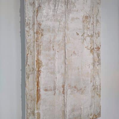 Abstract werk van Robbert Fortgens. Olieverf op linnen. Robbert Fortgens, bekend om de verschillende technieken en media die hij toepast in zijn schilderijen heeft al vanaf zijn academie tijd een voorliefde gehad voor abstracte stukken. De met olieverf aangebrachte gelaagdheid en structuur zorgt voor een subtiel maar daardoor krachtig spanningsveld waarmee hij de kijker blijft verrassen.