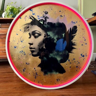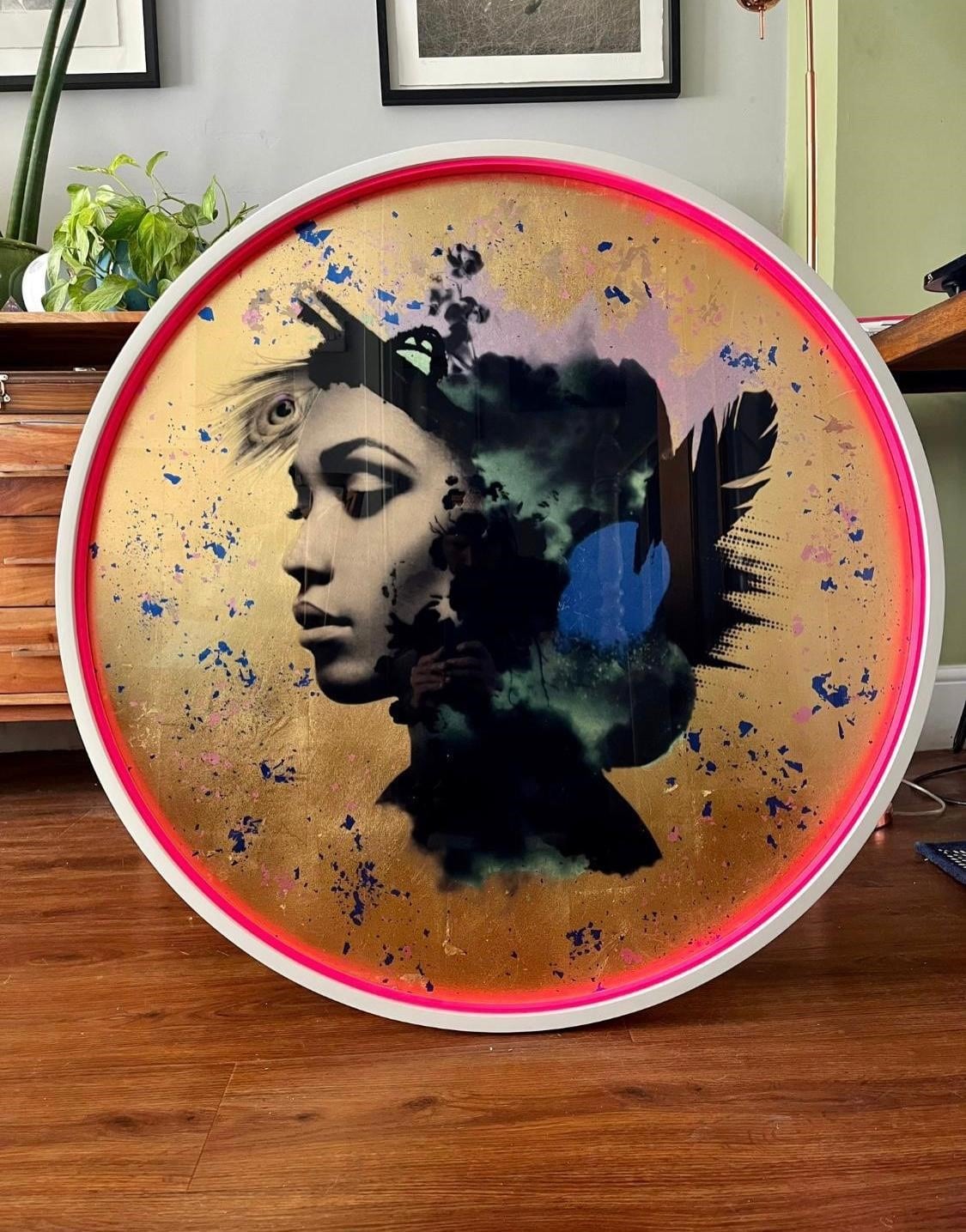 Prachtig werk in ronde uitvoering met neon rand van Andrew Millar (2023).