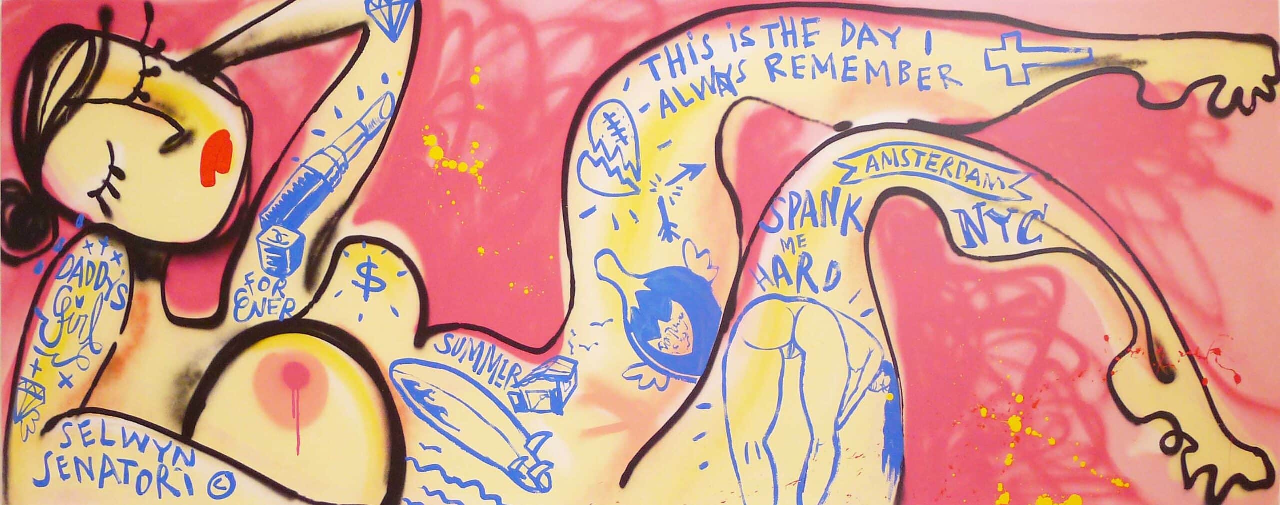 Uniek groot(!) origineel werk, geschilderd op een metalen paneel, van Selwyn Senatori. De bekende actrice Faya Lourens was in 2013 model voor dit werk. Het werk van de Amsterdams kunstenaar Senatori (Italiaanse vader, Nederlandse moeder) vindt zijn weg door Scandinavië, Europa, America, het Midden Oosten en Azië. Hoewel Selwyn altijd bescheiden is over zijn eigen werk is het succes niet verwonderlijk. Met zijn universele- ‘bon vivant’ beeldtaal en unieke en trefzekere schilderstijl weet de kunstenaar zijn internationale publiek telkens te verrassen.