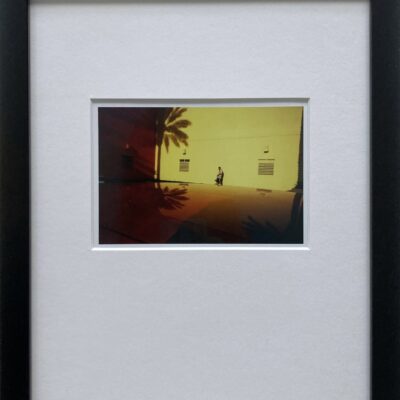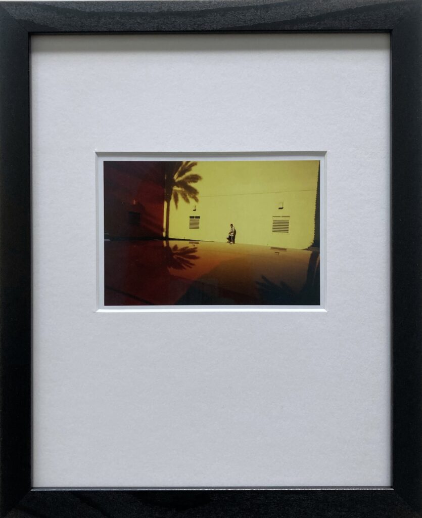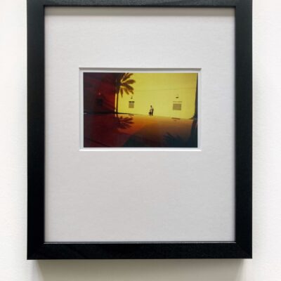 “This picture was made in Florida, on a hot summer’s day. I had the blazing yellow wall before me, and was waiting for something to happen. The red area of the image is the hood of a car. I saw the boy approaching on the right and pushed the button.”