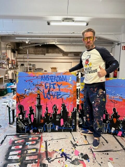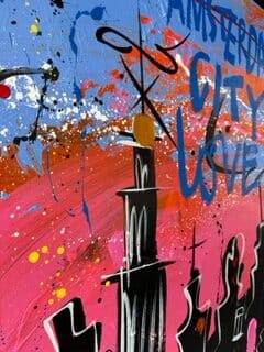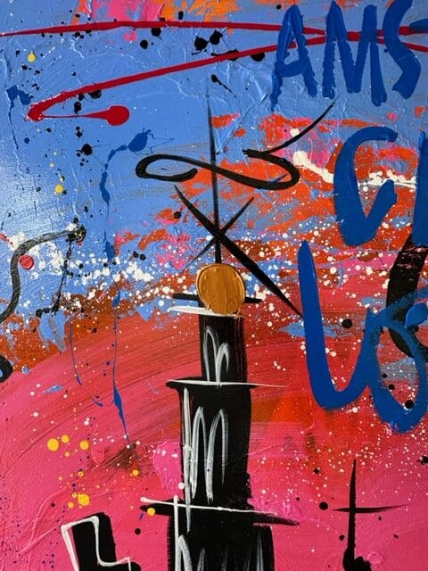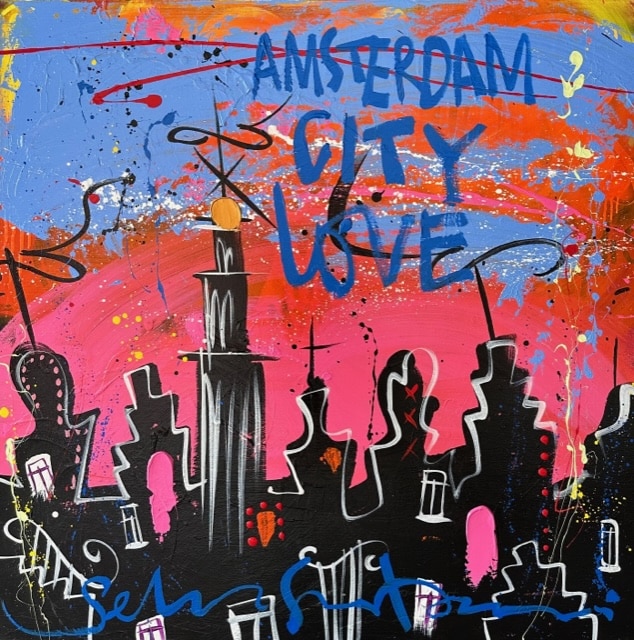 Origineel werk van Selwyn Senatori (2023) in prachtige kleuren. Het stuk is met gemengde technieken opgebouwd met een vlotte, vrije en trefzekere schilderstijl en het krachtige, dynamische kleurgebruik wat zo karakteristiek is voor Senatori’s werk. ‘Oud Zuid’ is vervaardigd op een dubbeldik opgespannen linnen doek waarvan de zijkanten door Selwyn zijn mee geschilderd.