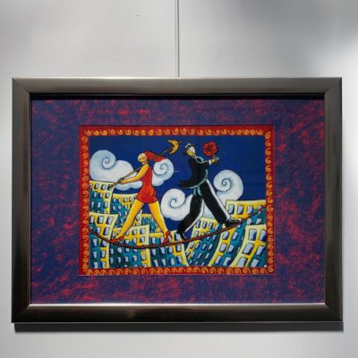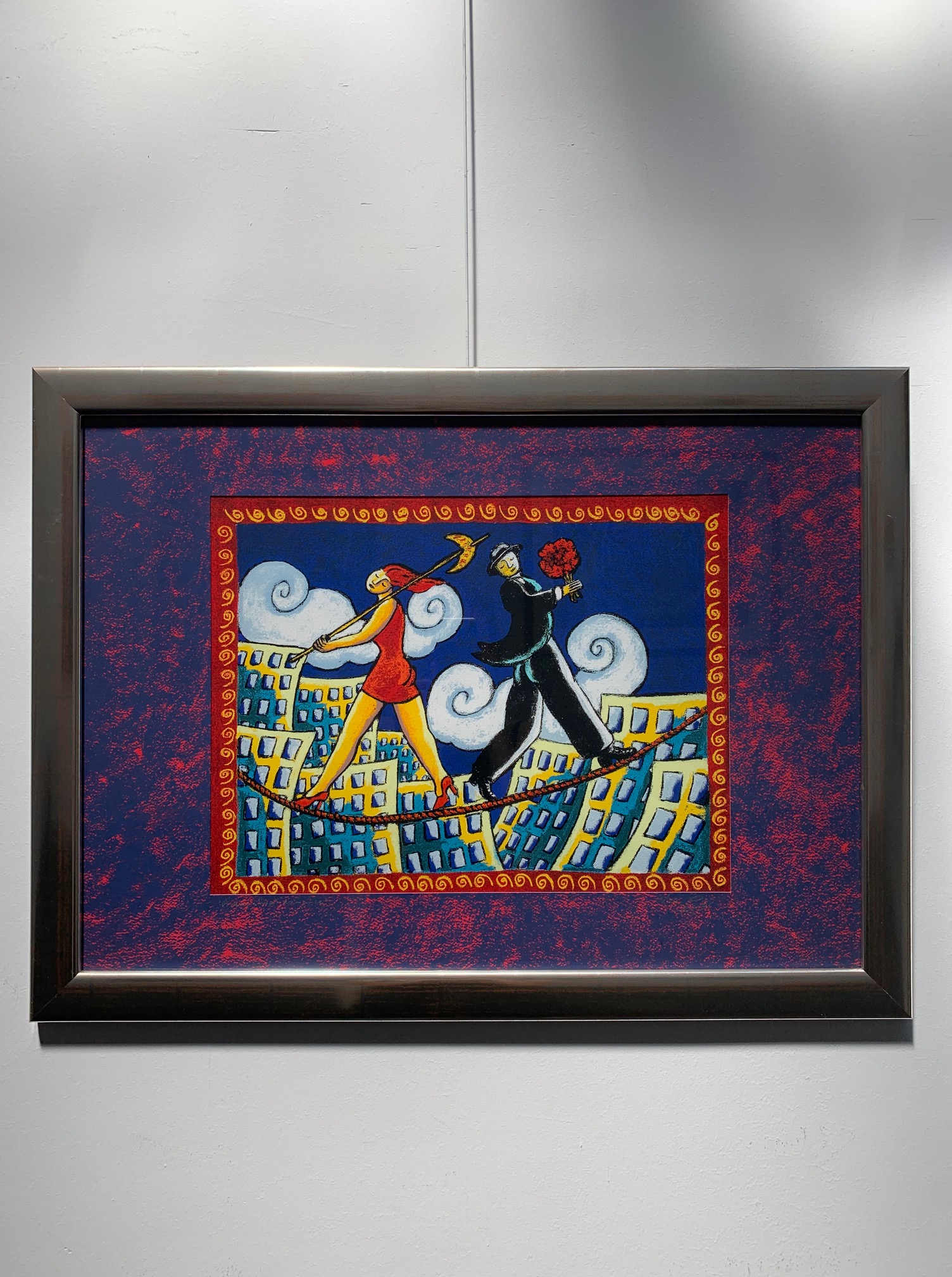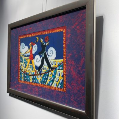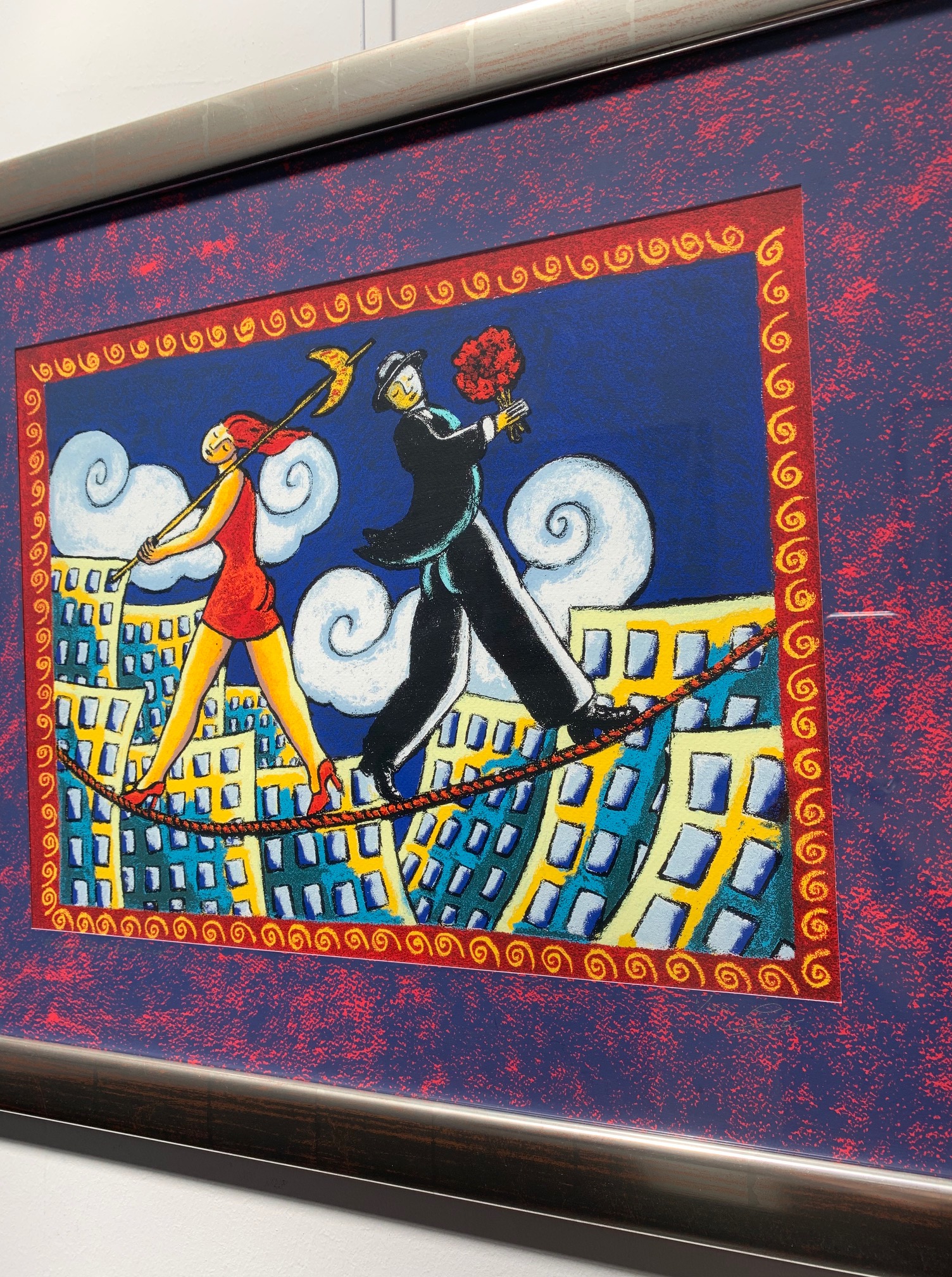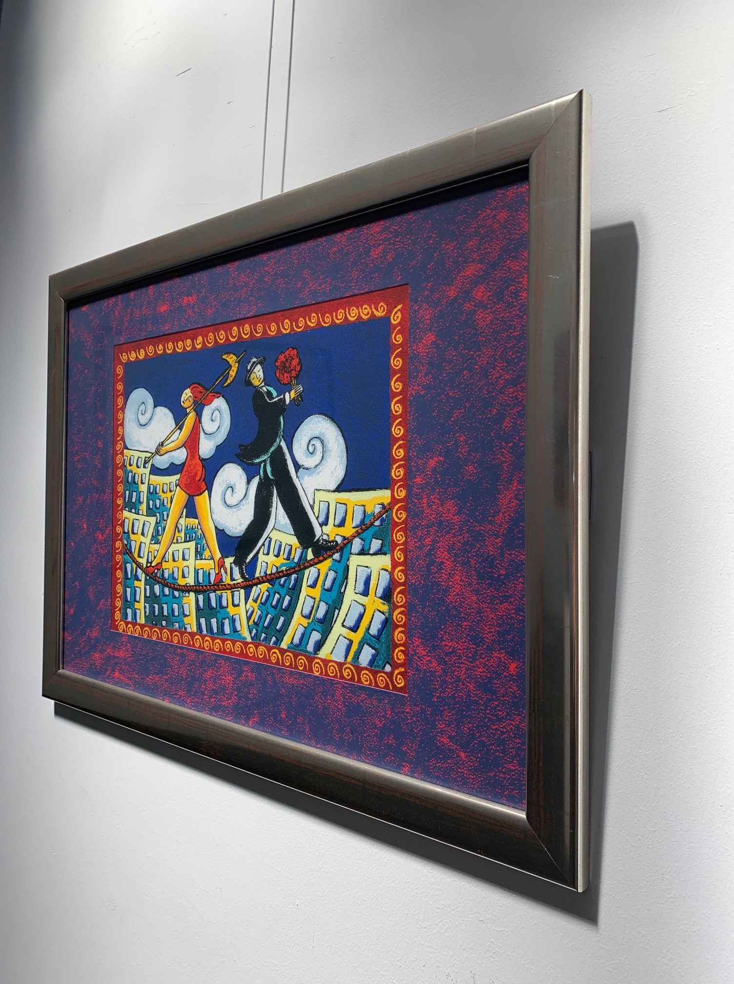 Zeer fraaie zeefdruk van Jacques Tange. De zeefdruk is geproduceerd in 2006. De kunstenaar heeft gebruik gemaakt van prachtig dikke drukgangen. De zeefdruk is in een zeer beperkte oplage gemaakt. Het werk is ingelijst in een handgemaakte zilverkleurige lijst en voorzien van een passe-partout.