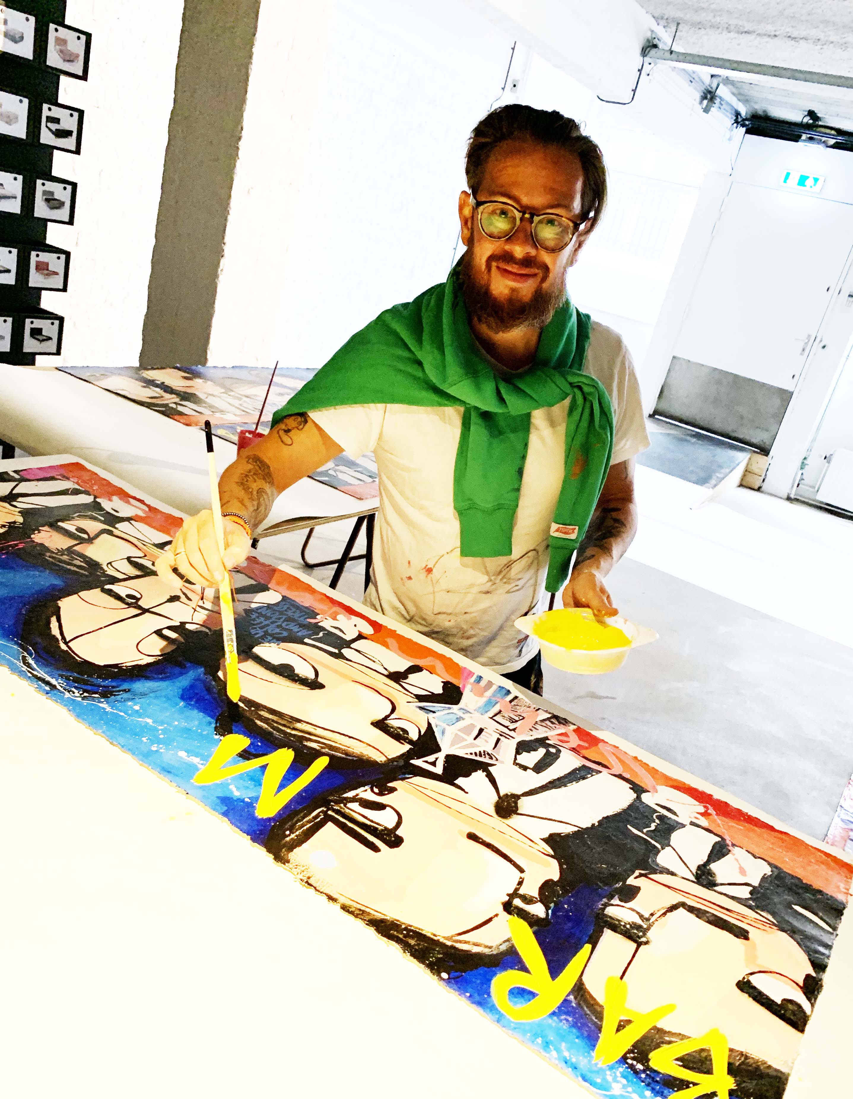 Selwyn heeft tijdens de productie veel details met de hand op de stukken aangebracht waardoor er nog meer diepte en dynamiek in de stukken is ontstaan en niet 1 zeefdruk hetzelfde is.