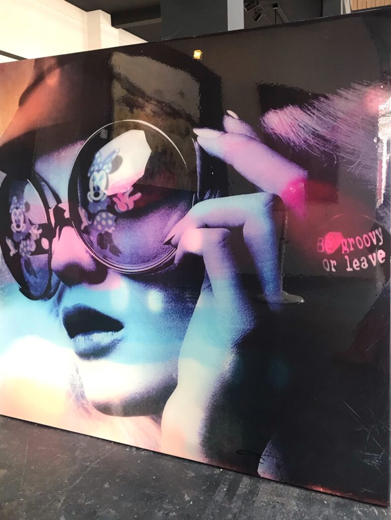 Mixed media monotype op linnen van de befaamde Duitse kunstenaar Jörg Döring. Het werk is door de kunstenaar opgebouwd uit fraaie heldere kleuren gecombineerd met foto’s, ruw geschilderde oppervlaktes, typografie en geschreven teksten. Het werk is met een epoxy laag afgewerkt. De monotypes zijn in een volledig met de hand vervaardigde oplage vervaardigd waardoor elk stuk volledig uniek is.