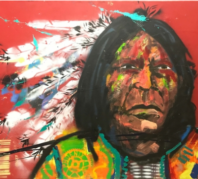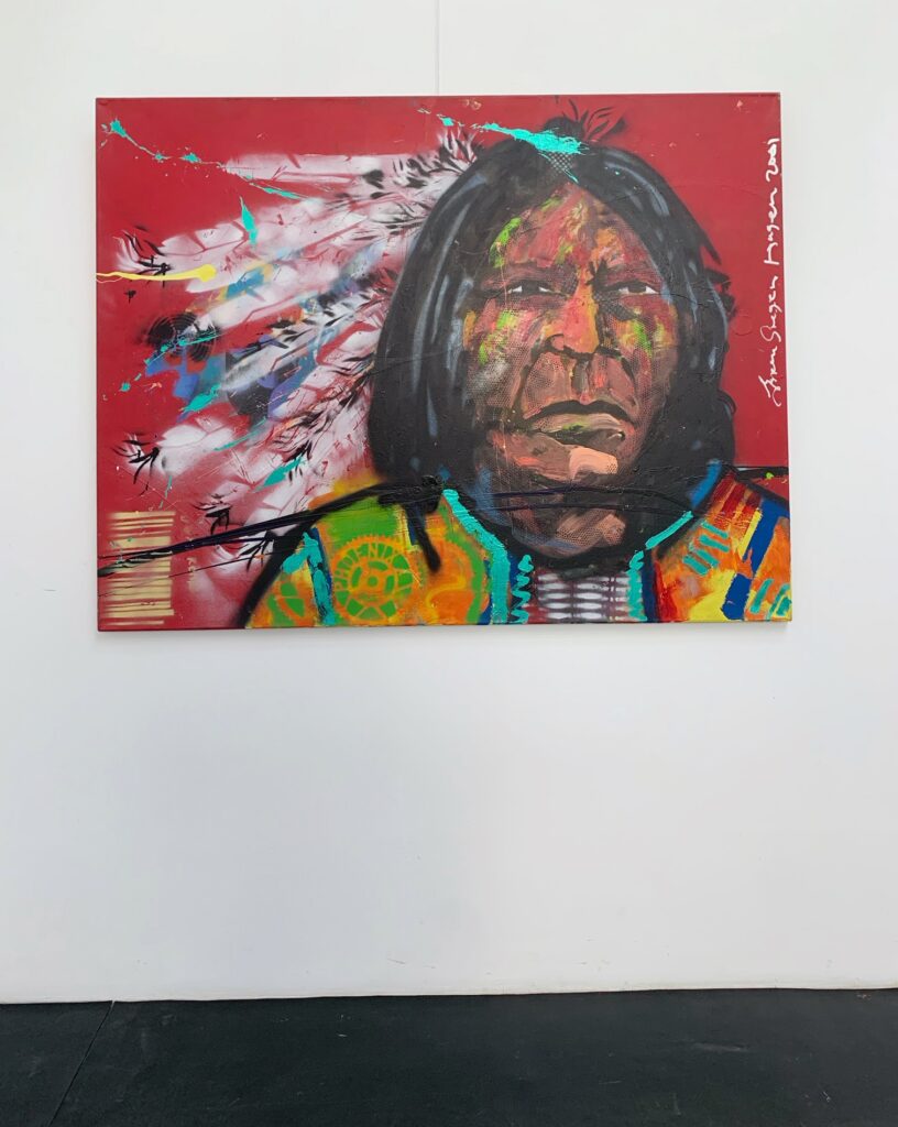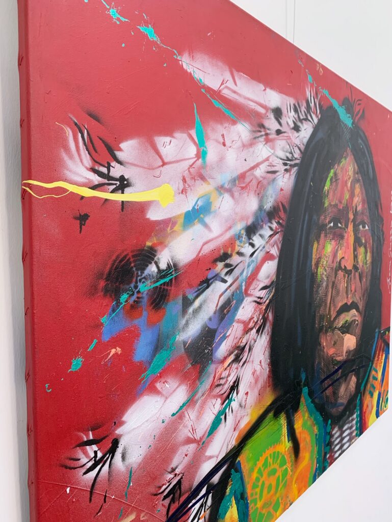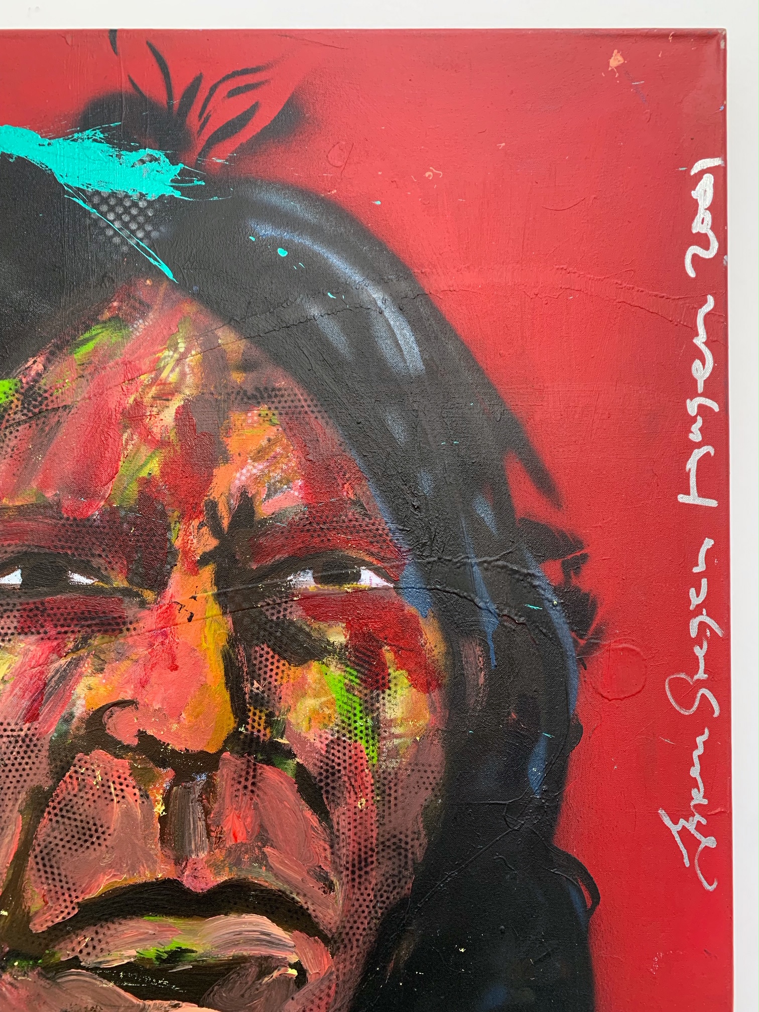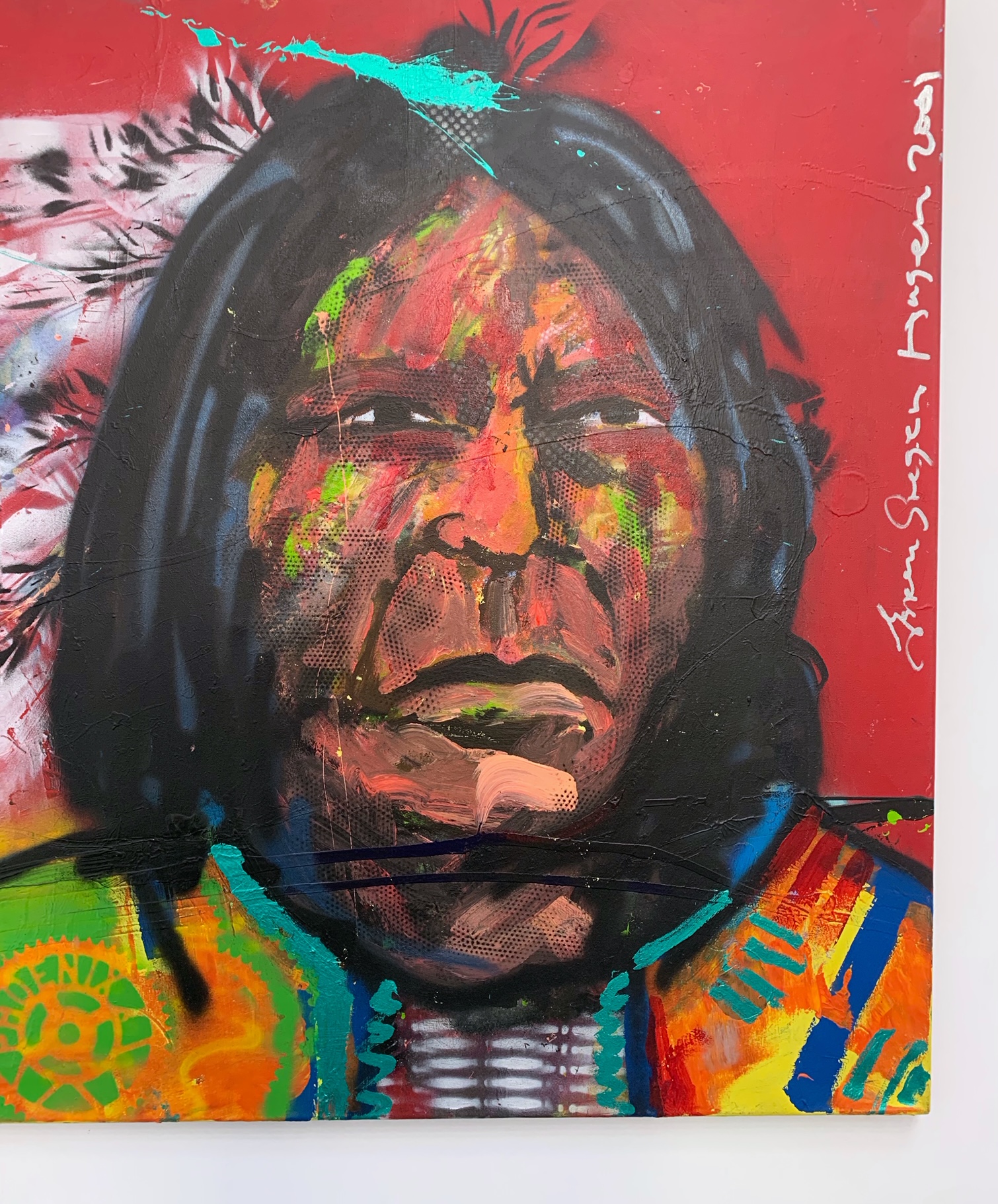 Prachtig origineel werk van Espen Greger Hagen.Het stuk heet “Big Chief” en is door de kunstenaar gemaakt met de voor hem zo kenmerkende techniek van sjablonen, paintbrush en acryl.