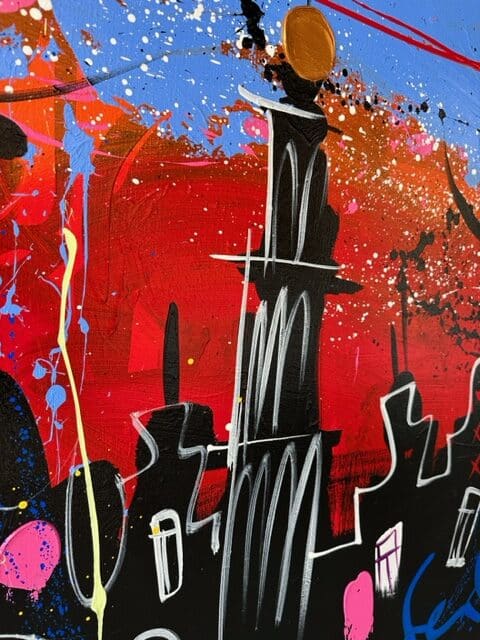 Origineel werk van Selwyn Senatori (2023) in prachtige kleuren. Het stuk is met gemengde technieken opgebouwd met een vlotte, vrije en trefzekere schilderstijl en het krachtige, dynamische kleurgebruik wat zo karakteristiek is voor Senatori’s werk. ‘Big City Nights I’ is vervaardigd op een dubbeldik opgespannen linnen doek waarvan de zijkanten door Selwyn zijn mee geschilderd.
