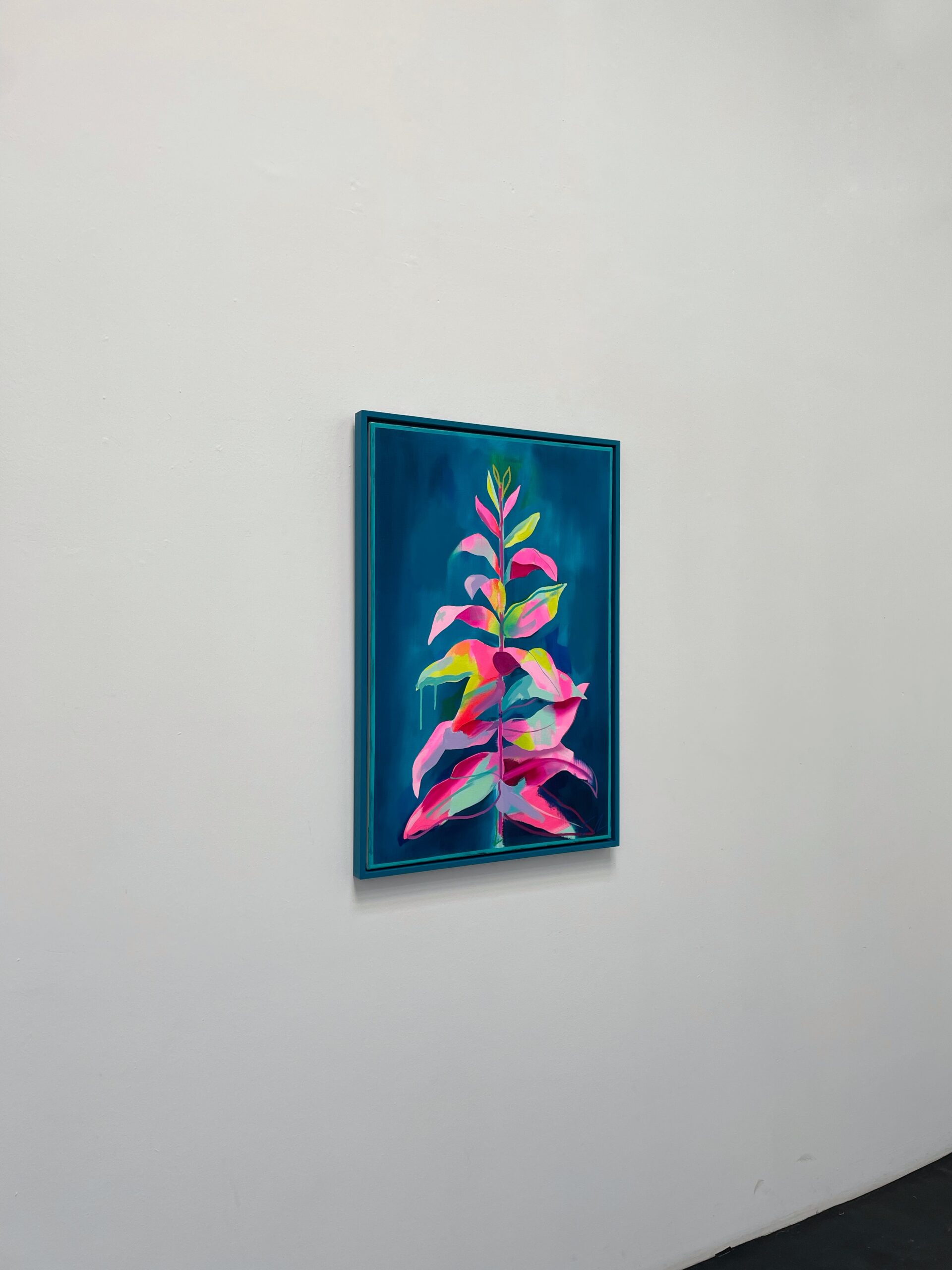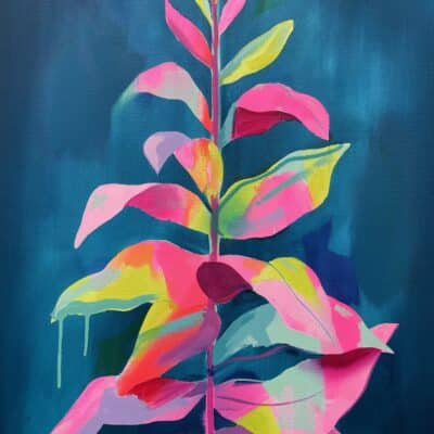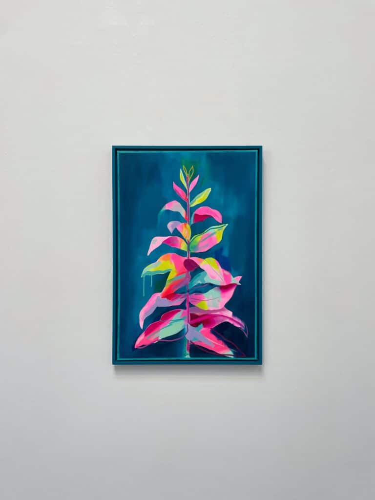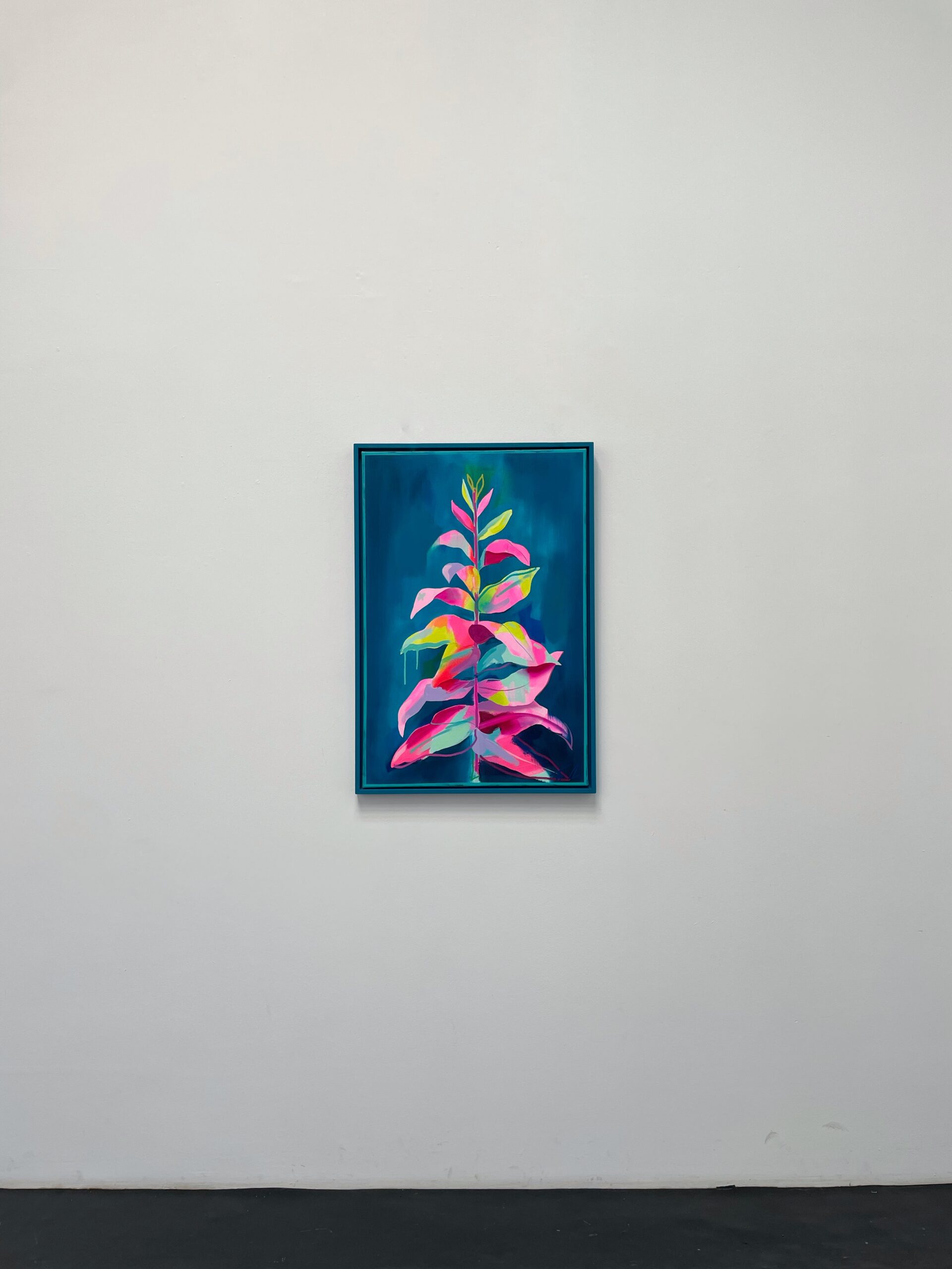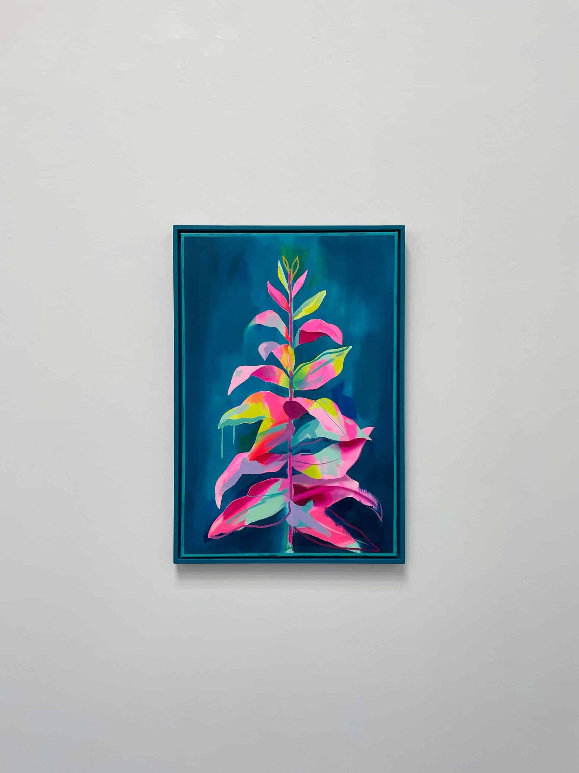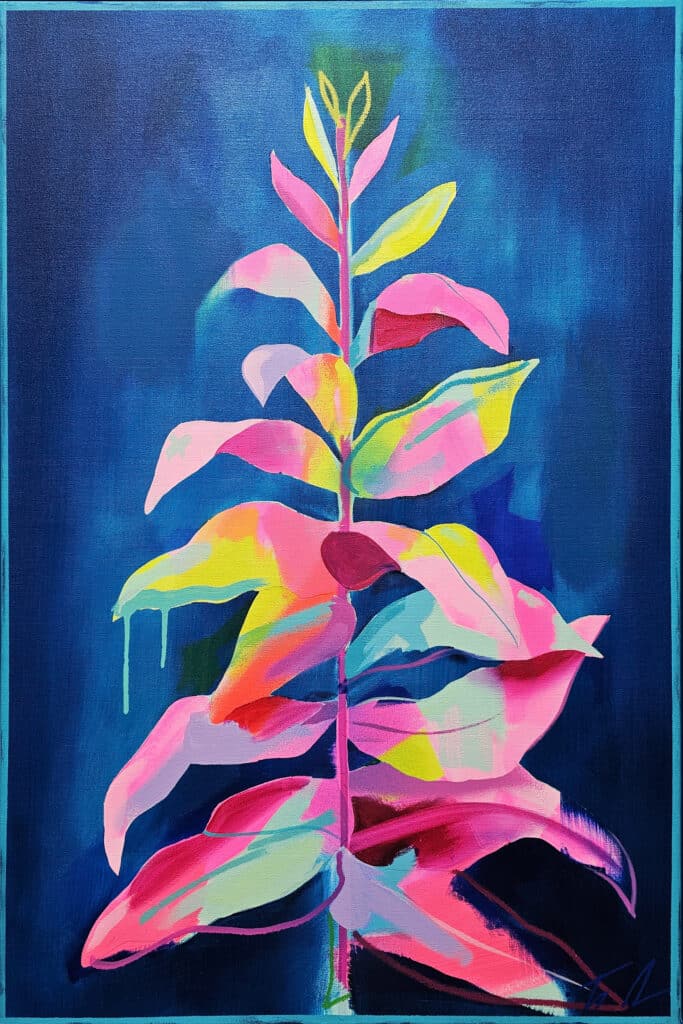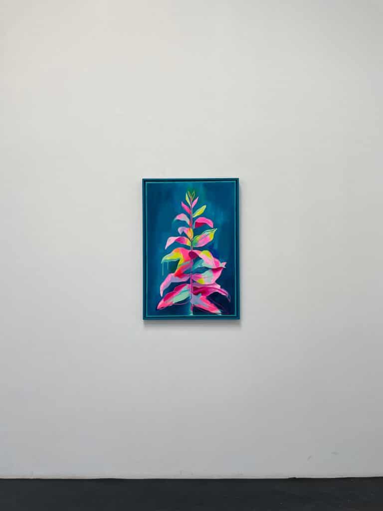 Fowler takes inspiration from exotic and migratory plants reflecting his own DNA, from west Africa, via the Caribbean to the UK. He subverts traditional and contemporary methods of applying oil, acrylic, spray, enamel and graffiti inks using brushes, different aperture caps and marker paint mops to orchestrate purposeful marks, strokes, drips, scrapes and smears across the canvas whilst constructing his exciting and dynamic artworks.