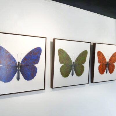 Butterfly I, II en III zijn vlinders, opgebouwd uit foto’s van schroot uit Leidse straten, gereedschap uit een Franse boerenschuur en voorwerpen uit kringloopwinkels. De nummers corresponderen met de kleuren waarin het werk is uitgevoerd, respectievelijk oranje, blauw en groen.