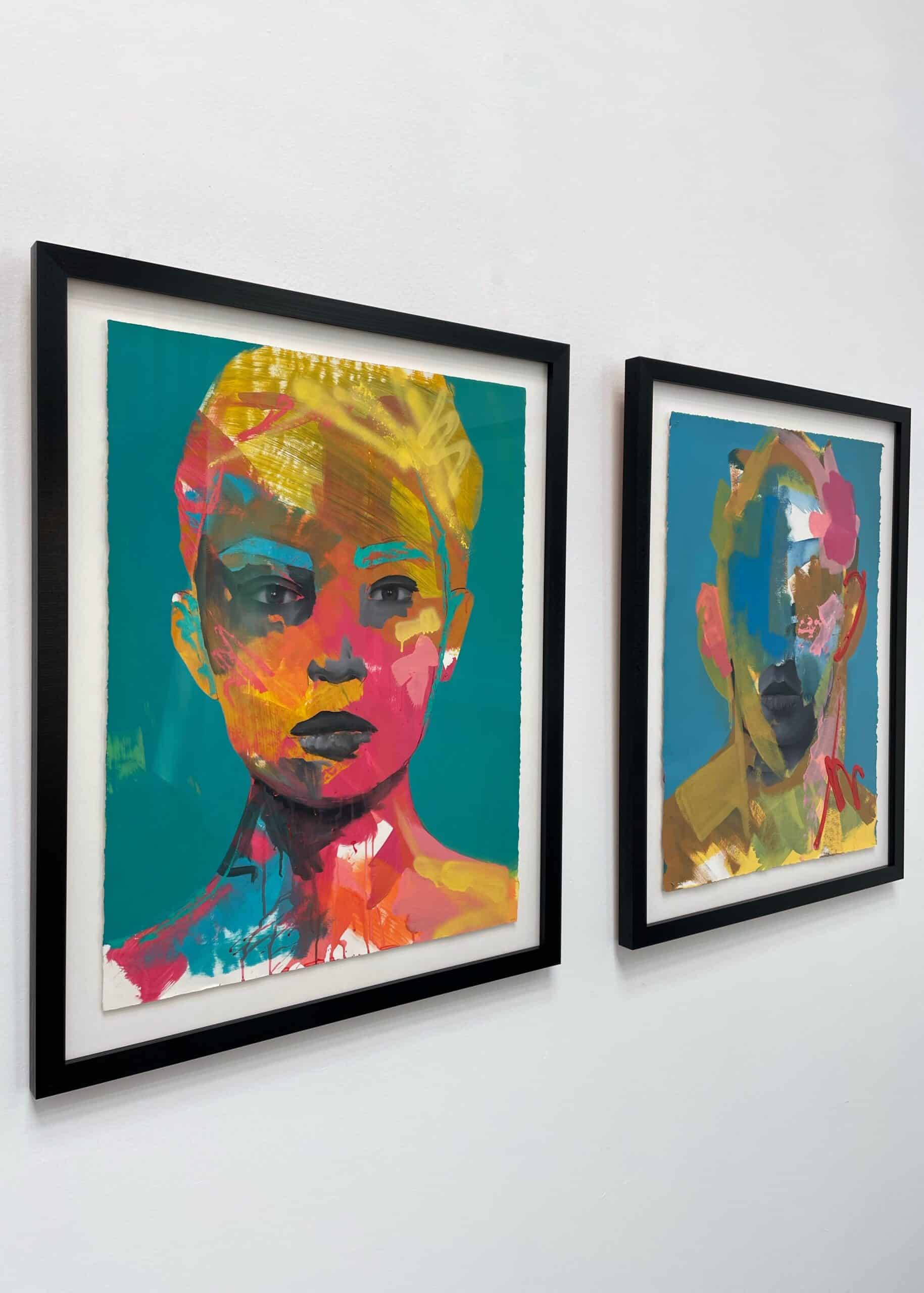 They share a studio and work closely together, from the initial concept to the final art work. This collaboration has resulted in a captivating series of works that blend their individual artistic identities into a unified expression, seamlessly weaving figuration with abstraction. The outcome is a collection that challenges viewers to reconsider their understanding of space, form, and color, encouraging fresh interpretations and deeper engagement with the artwork.
