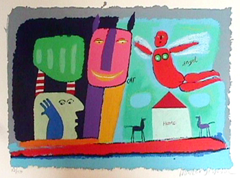 Leuke zeefdruk van Wouter Stips uit 2002 getiteld Cat, angel, home.
