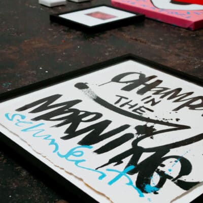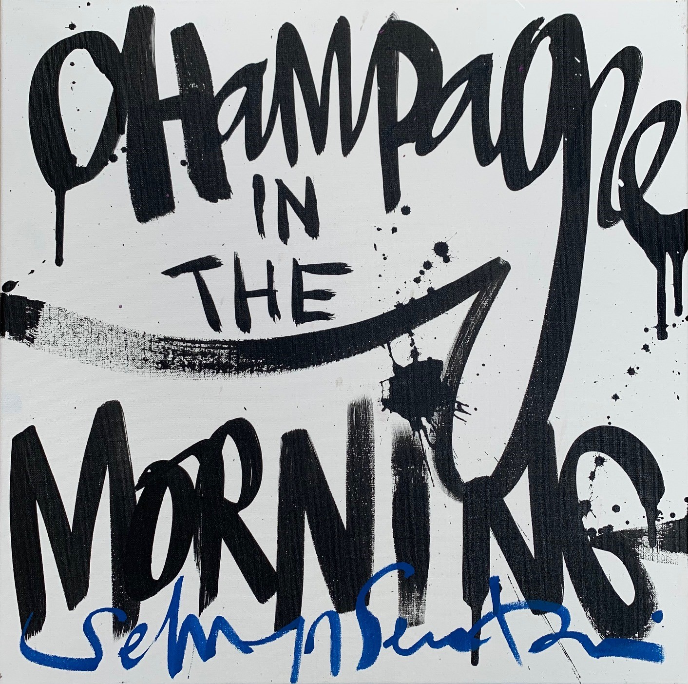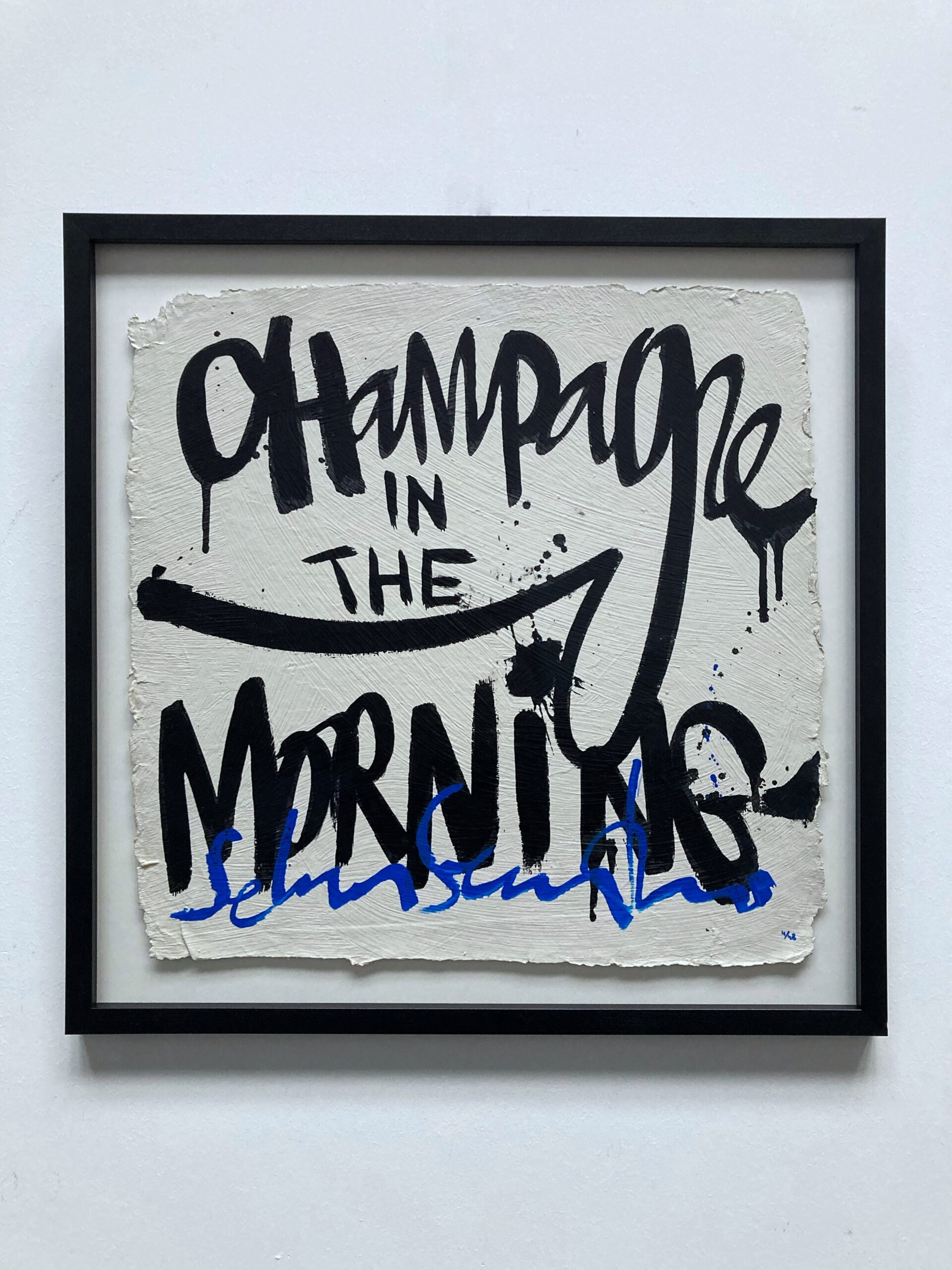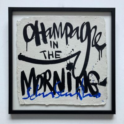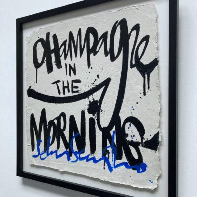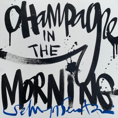 Nieuw werk uit de zeefdruk serie van Selwyn Senatori, 2021, gebaseerd op zijn bekende leus ‘Champagne in the Morning’ die kenmerkend is voor zijn levensstijl. Een levenswijze vol van rock ’n roll, non-conformisme en kunst.