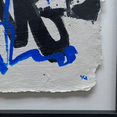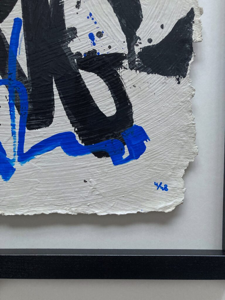 Ingelijst in handgemaakte zwart houten lijst en voorzien van exclusief museumglas.