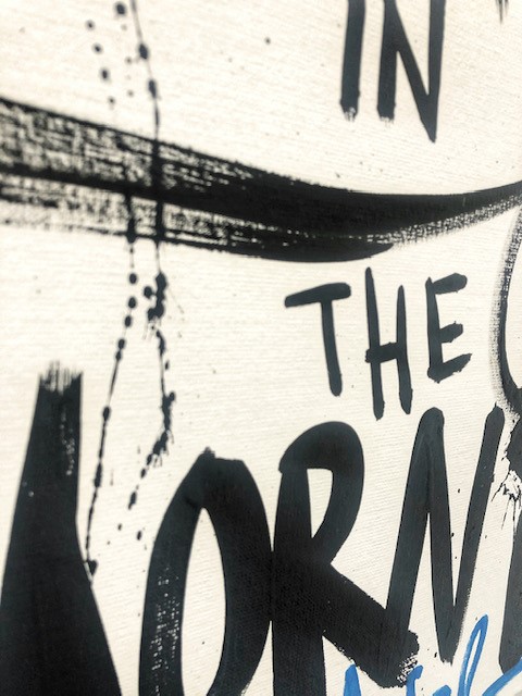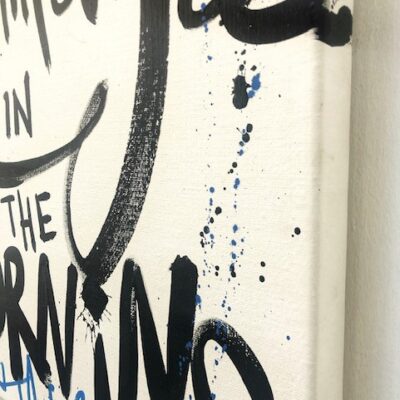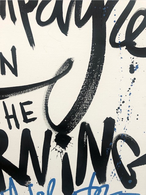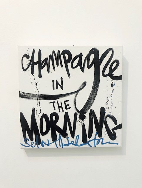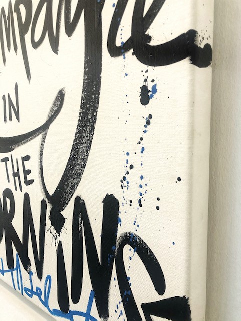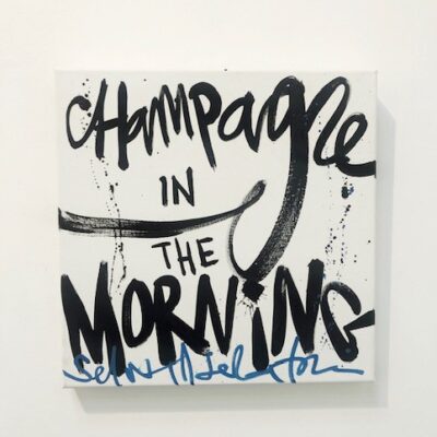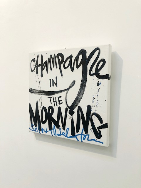 Origineel werk op linnen door Selwyn Senatori. Het stuk kenmerkt zich door een dynamische mix van technieken en kleuren die van het doek af lijken te spatten. ‘Champagne in the morning’ is een bekende leus van Selwyn die zijn levensstijl weergeeft. Een levenswijze vol van rock ’n roll, non-conformisme en kunst. Het schilderij is opgespannen op een houten frame en de zijkanten zijn mee geschilderd.