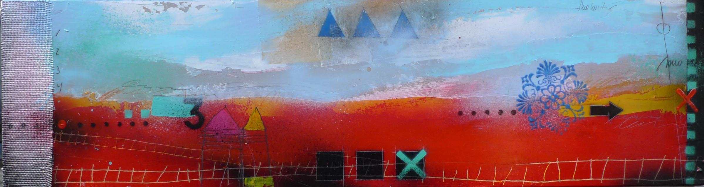 Theo Koster heeft eind 2011 een fraaie serie nieuwe originele schilderijen vervaardigd, waar dit er 1 van is. Theo Koster heeft ook in deze stukken een keur aan gemengde technieken en verrassend kleurpalet toegepast waardoor de werken weer prachtig intens van kleur- en speels van figuratie zijn!