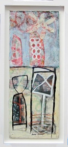1 van een prachtige serie werken van Anna Verrijt, vervaardigd in een gespecialiseerd atelier in India. De basis voor de werken vormt dik 1000(!) grams ter plaatse handgeschept kartonpapier. De bladen zijn door de kunstenares met gemengde technieken en reliëfspecie bewerkt en opgebouwd waarbij Anna Verrijt zich goed heeft laten inspireren door de daar voorhanden zijnde unieke materialen, kleurpigmenten en nieuwe technieken. De stukken zijn opgebouwd uit vele transparante lagen, die allemaal min of meer zichtbaar zijn en zo is prachtig de ontstaansgeschiedenis van het kunstwerk af te lezen. De werken laten bij elke aanblik nieuwe ontwikkelingen zien en blijven de kijker daardoor keer op keer boeien!