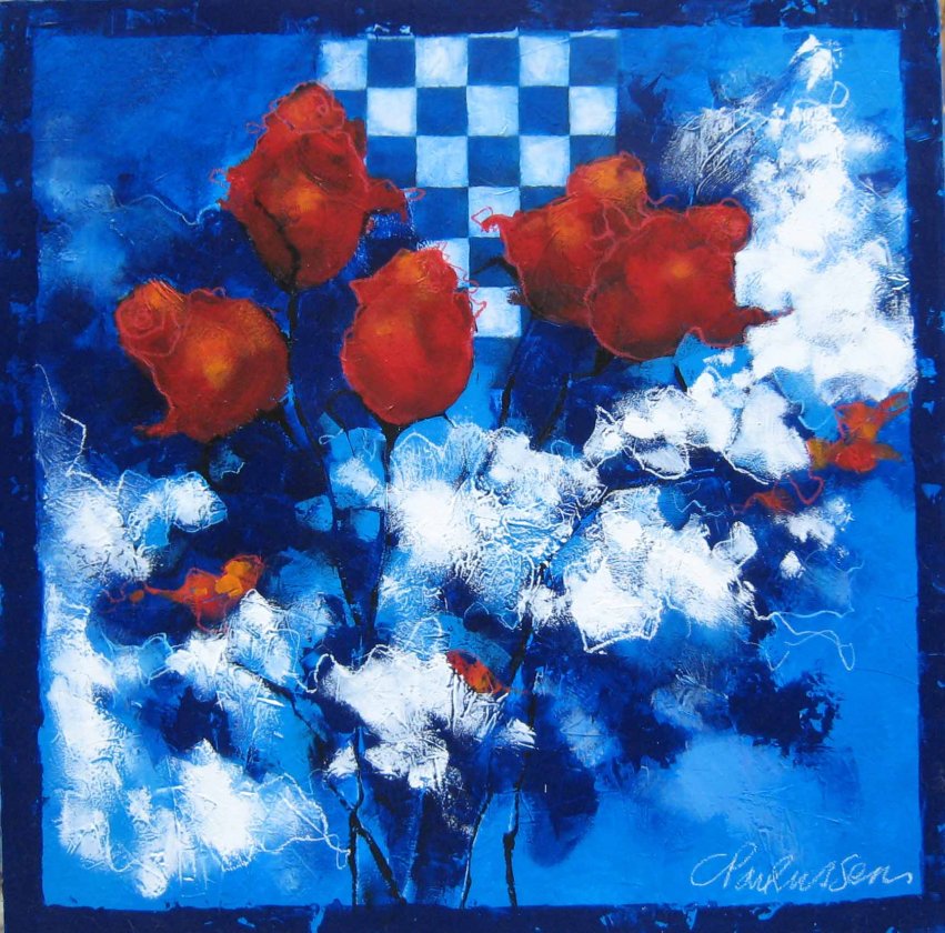 Origineel werk vervaardigd met gemengde technieken op linnen van Carolina Paulussen uit de expositie “Kleur!”. Met de expositie “Kleur!” tonen Carolina Paulussen en Gerda Elfring in Kunsthuis Leiden een selectie van ruim 20 fantasieprikkelende werken die stralen van spontaniteit en levenslust.