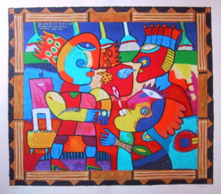 Prachtige zeefdruk, uit 2002, van Clemens Briels (Official Artist Olympic Winter Games Salt Lake City 2002 ), genaamd At Club 501 in New York some Vips are not Vips anymore after 10:30 P.M. De prijs is inclusief een mooie exclusieve handgemaakte lijst.