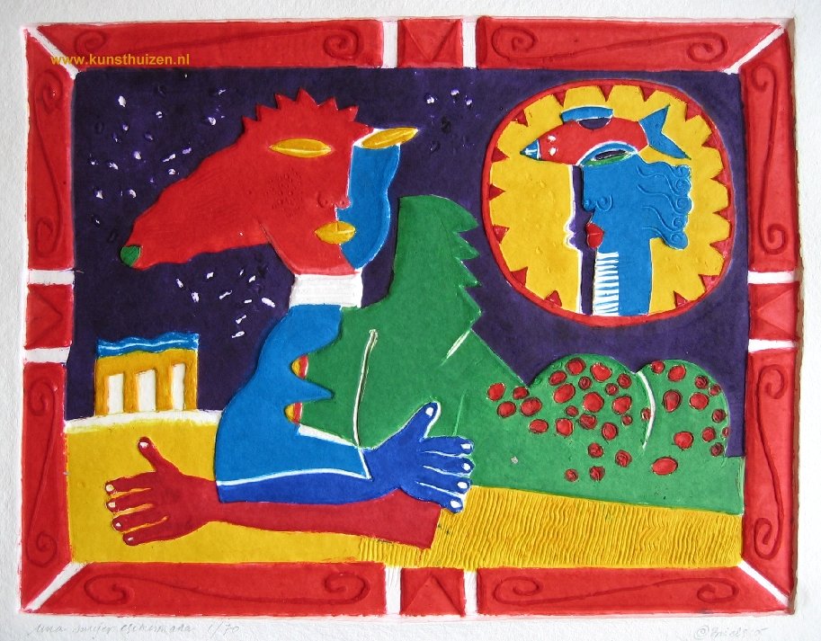Clemens Briels heeft in het najaar van 2005 een prachtige serie van 4 Aquagravures gemaakt! Het is voor het eerst dat Briels deze prachtige maar wat ingewikkelde techniek heeft toegepast maar het resultaat is schitterend. De aquagravures zijn opgebouwd uit een dikke laag handgeschept papier dat in een met de hand beschilderde reliëfmal wordt gedroogd. Deze methodiek voegdt een diepte dimensie toe aan het werk en maakt het fantasisch om naar te kijken.
