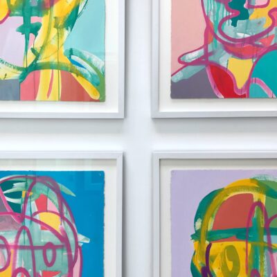 New work by Santiago Pani. Colorful acrylic and spray paint on cotton paper, 2020.
