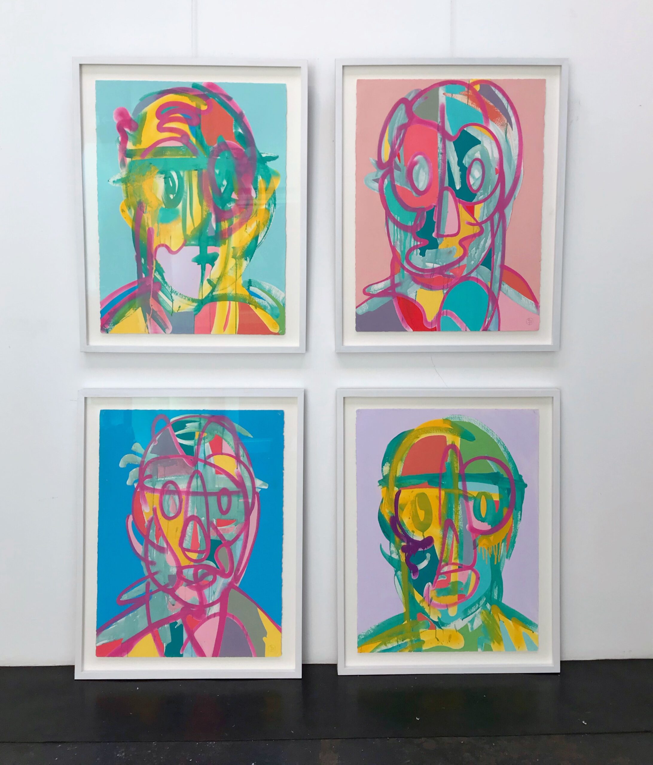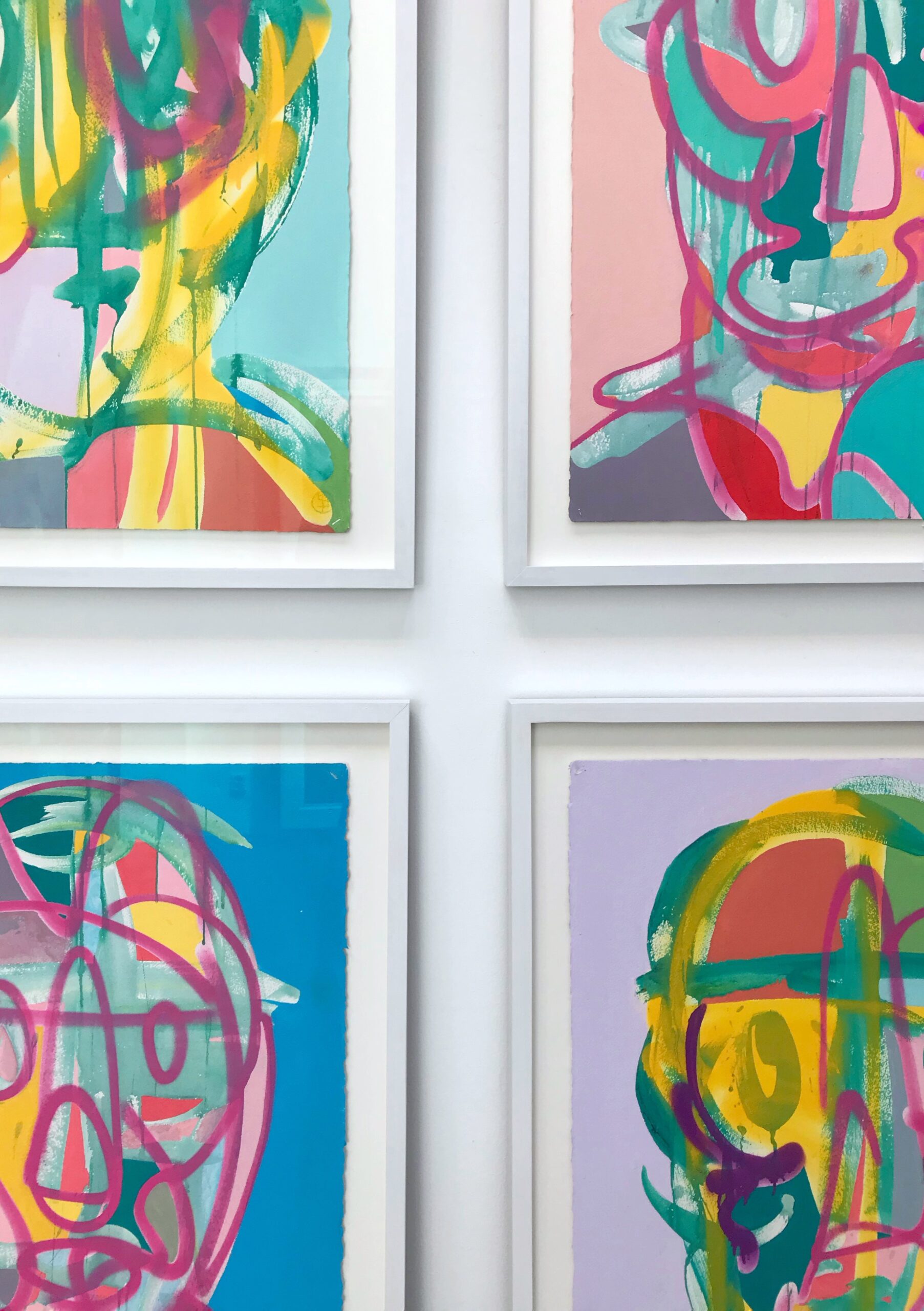 New work by Santiago Pani. Colorful acrylic and spray paint on cotton paper, 2020.