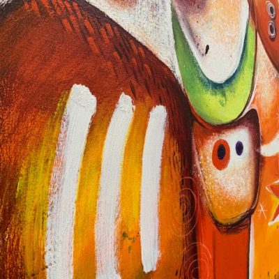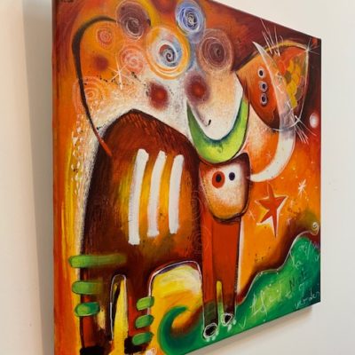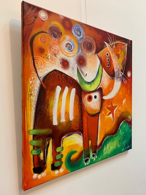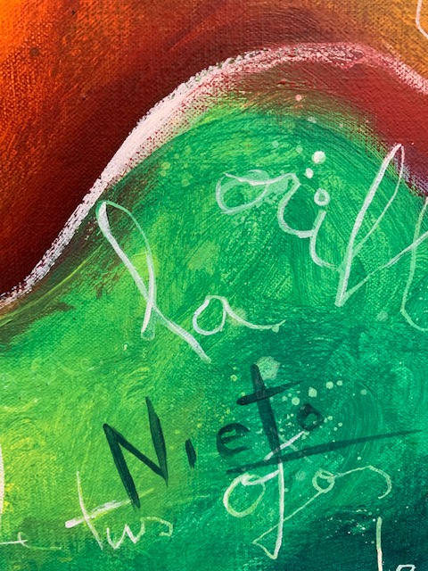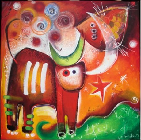 Prachtig origineel werk op linnen van Angeles Nieto.Het werk is in 2006 door de kunstenares vervaardigd met acryl en inkten op een canvas doek. De werken zijn prachtig van kleur en thematiek.