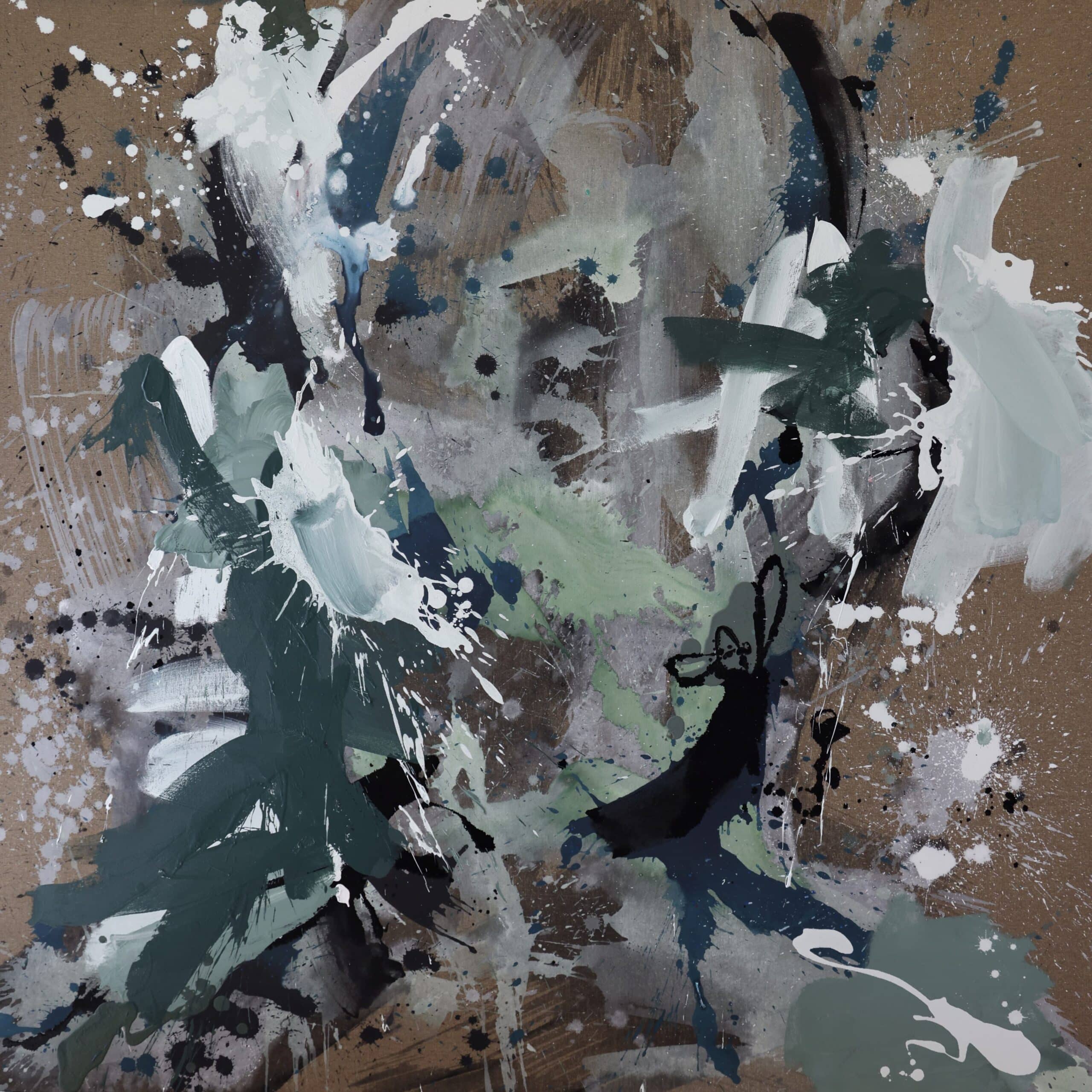 His pieces are built up in layers using mixed techniques. Acrylic, lacquer, and inks are applied expressively and intuitively. The final result leaves space for interpretation, allowing the viewer to recognize their own memories and associations within the work.