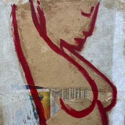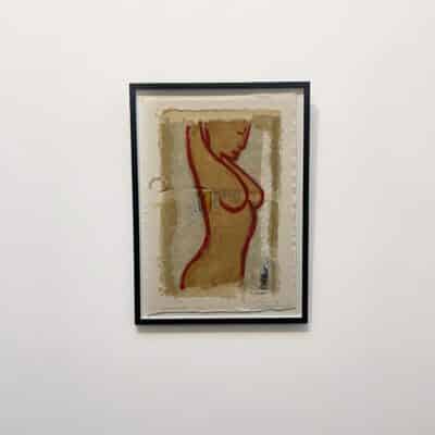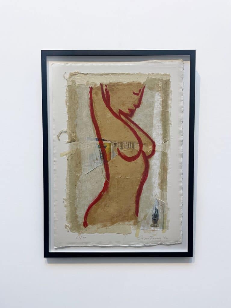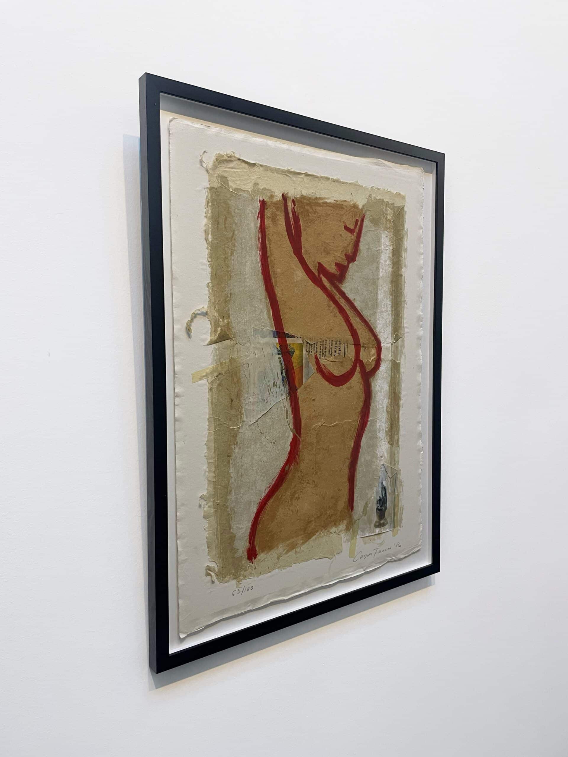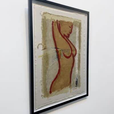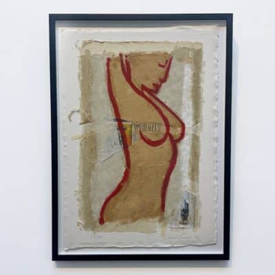 Bijzondere uniekdruk van Casper Faassen getiteld “Des Nudo” uit 2003. De zeefdruk is door de kunstenaar geproduceerd op fraai, handgeschept Thaïs- en Indisch papier, waarbij elk blad met de hand voorbewerkt is met krantenknipsels, foto’s, tekeningen en paintbrush. Over deze collages heen is door Casper de zeefdruk geproduceerd waardoor niet 1 zeefdruk hetzelfde is.
