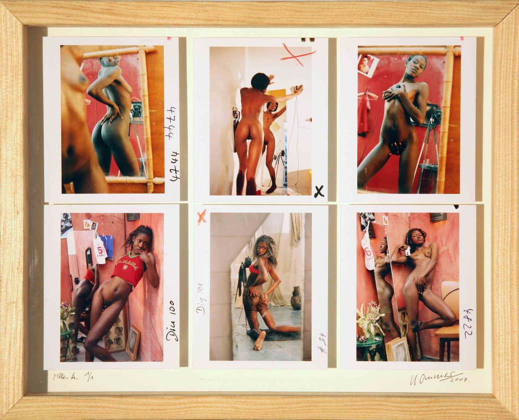 Fraaie serie van 6 originele contactprints uit het door Taschen gepubliceerde project “Do it yourself” van Uwe Ommer: Ommer bewapende vrouwelijke deelnemers met camera’s en vroeg hen zichzelf te fotograferen zoals ze dat zelf wilden, om zo te zeggen bevrijd van het voyeuristische oog van de fotograaf. Ommer fungeert slechts als “geestfotograaf” door ze te helpen met de belichting en opstelling. Zo konden de modellen zich uitleven op de manier die ze zelf wilden, van sexy en uitdagend tot romantisch of eenvoudigweg puur zichzelf zijnde.