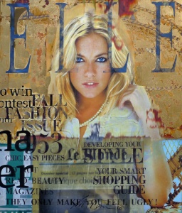 1 van 2 prachtige originele werken op linnen van Marcel Terrani van eind 2010. Terrani’s werk past in de traditie van de decollage, de oorsprong van de latere Popart. De decollage methode ontstond in de jaren ’50 en vond zijn oorsprong bij de befaamde kunstenaar Mimmo Rotella. Terrani verbeterde de decollage methodiek met behulp van de hedendaagse digitale media. Hij combineert in zijn werk verschillende stijlen en multimedia technieken. Zijn stukken zijn vervaardigd op linnen en met de hand met gemengde technieken bewerkt en beschilderd (waaronder met echt bladgoud/zilver, paintbrush, olieverf en sjablonen).